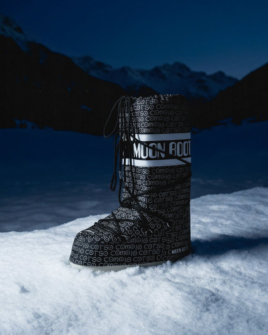 Inspired by the 1969 Moon landing, Moon Boot is the quintessential winter boot. Universally recognized for its uniqueness and revolutionary design, Moon Boot is a product that marked an era, effectively defining a new product category and becoming an international icon. To celebrate the partnership between the brand and 10 Corso Como, the iconic silhouette has been reinterpreted to present two exclusive models, featuring all-over graphics depicting the 10 Corso Como logos.Â