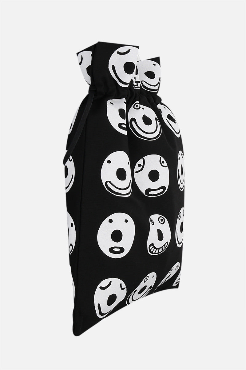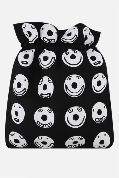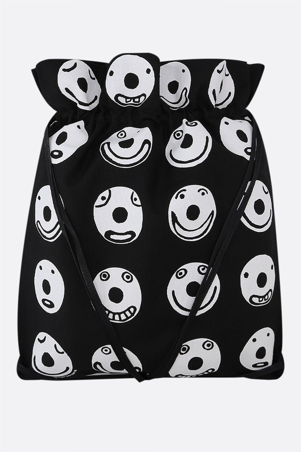 10 Corso Como's practical backpack crafted in black cotton canvas with contrasting Smile print. It features drawstring closure / shoulder straps and unlined interior.