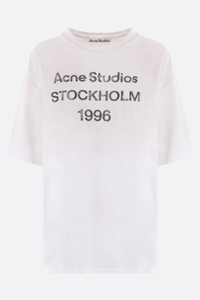 Acne Studios t-shirt crafted in faded black cotton and hemp jersey with distressed effect and Acne Studios 1996 print on front. It features crew neck, short sleeves and straight hem.