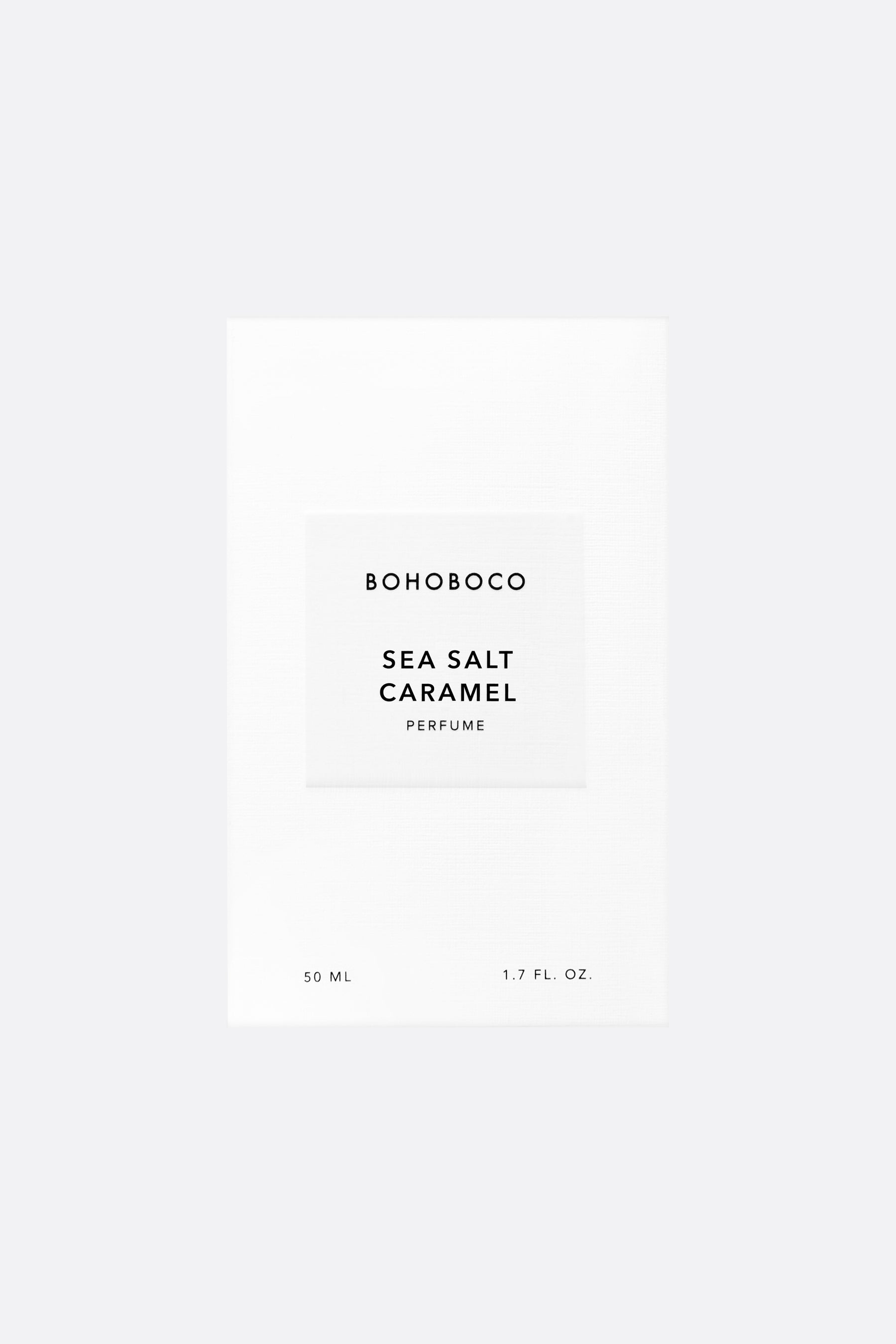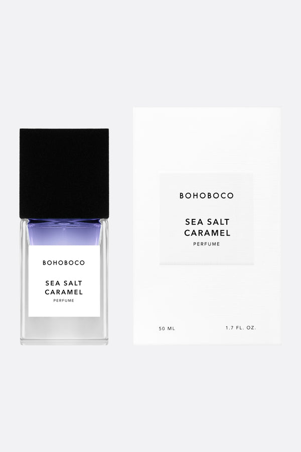 Bohoboco's Eau de parfum 50 ml. Head notes: fresh lemon, sea salt, pink pepper; heart notes: jasmine, bay leaf, seaweed; base notes: salted caramel, brown sugar, cedarwood.