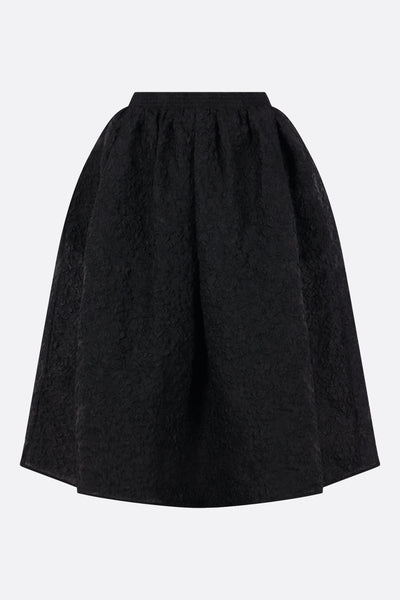 Cecilie Bahnsen circle skirt in black quilted Grasmere. Features an elasticated waistband, side pockets, and a fully lined interior.