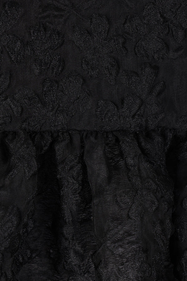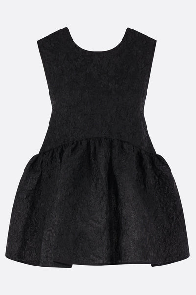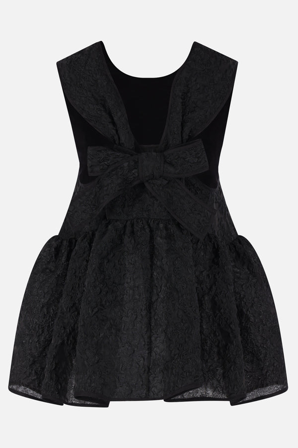 Cecilie Bahnsen sleeveless top crafted in black quilted Grasmere. Features a round neckline, oversized bow at the back, peplum hem, and partially lined interior.
