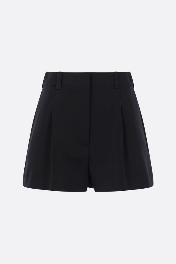 Pleated Givenchy shorts made from grain de poudre wool. Featuring a zip and hook closure, two side pockets, and one back pocket.