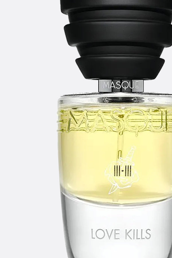 Masque Milano's Eau de parfum 35 ml characterized by the following olfactory notes: rose oil Turkish, geranium oil Egypt “for life”, love skin accord (ambrette, rose oxide), rose Turkish, patchouli oil molecular distillation Indonesia and love scars accord (cedarwood oil, animalic musks, ambrarome).