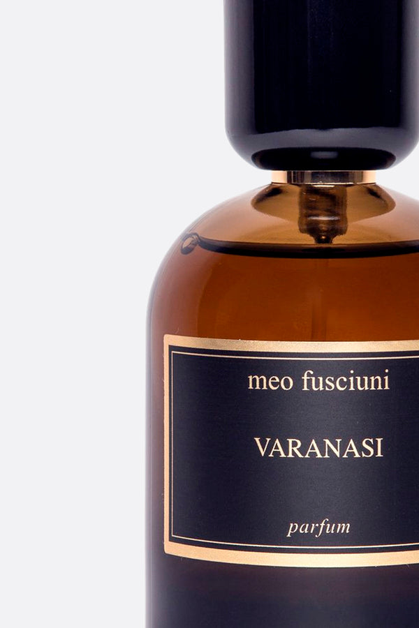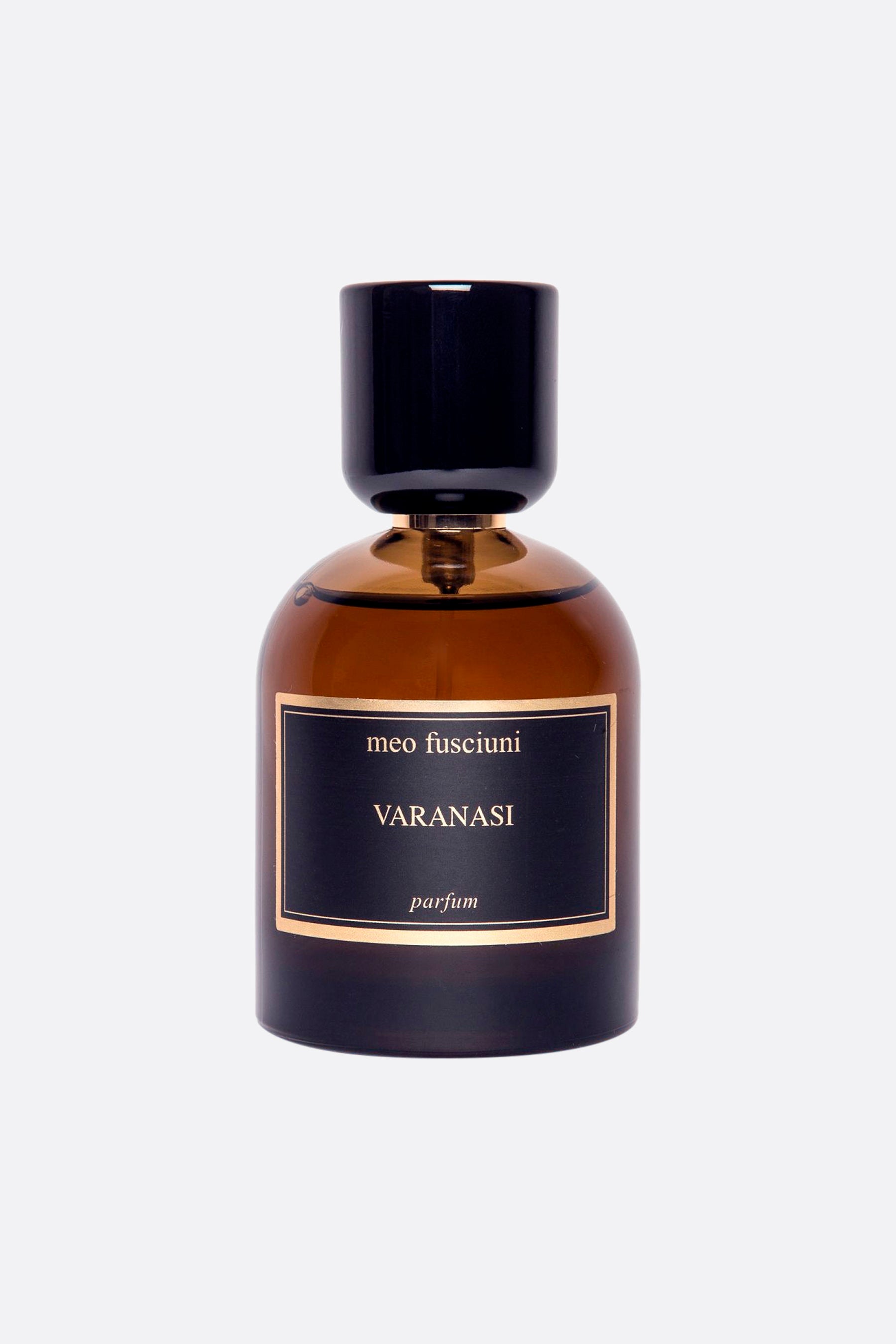 Meo Fusciuni's Eau de parfum 100 ml characterized by the following olfactory notes: saffron, nutmeg, cardamom, incense, ambergris, jasmine, rose, ambrette, cypriol, spikenard, vetyver, oud, gurjum, leather and animal notes.