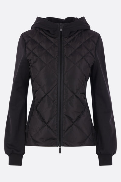 full-zip hoodie in jersey and padded nylon
