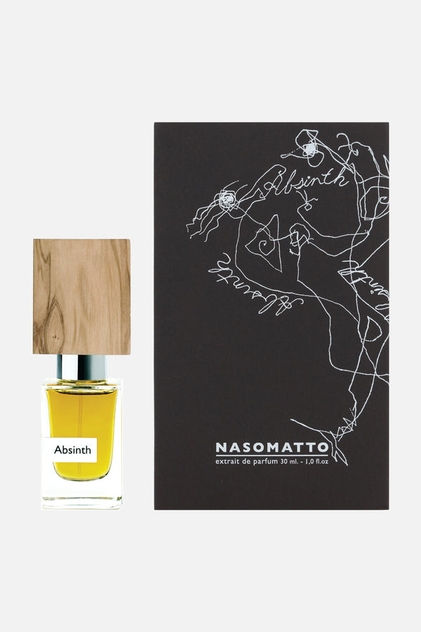 Nasomatto's Extrait de parfum 30 ml characterized by the following olfactory notes: green notes, mugwort, woods, amber woods, absinthe.