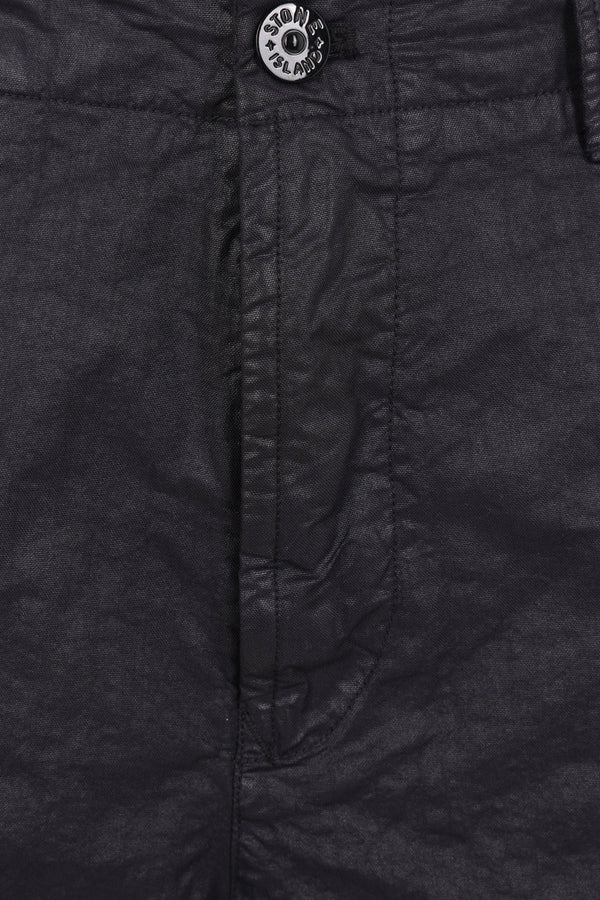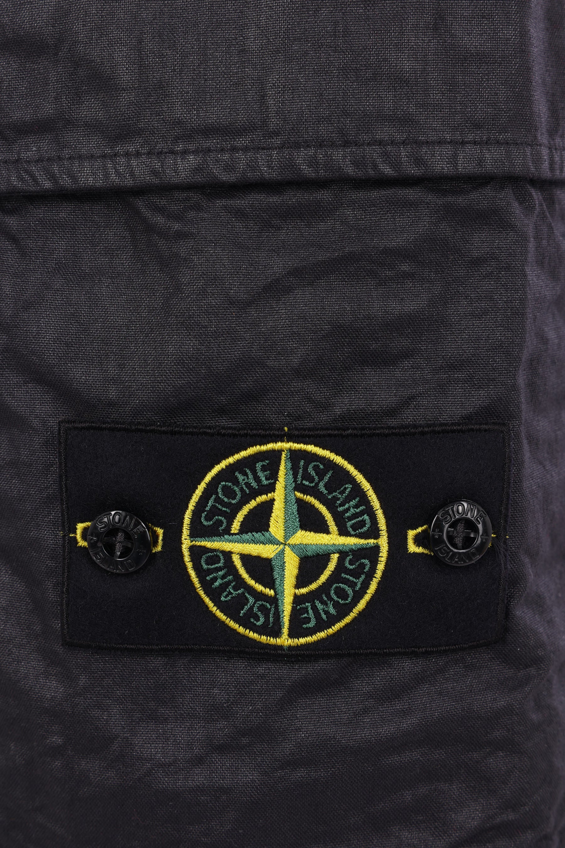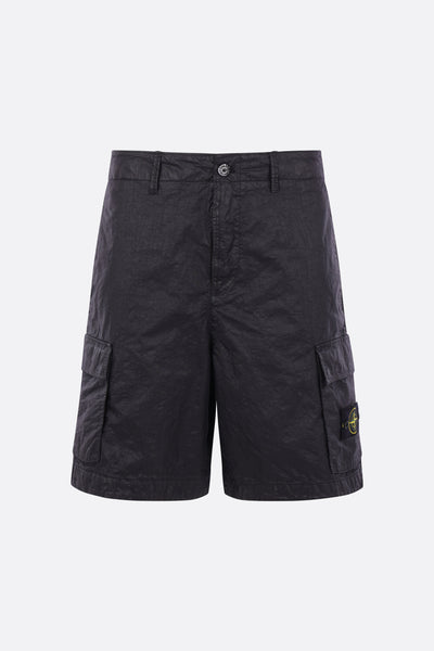 Stone Island cargo shorts made from black nylon Panama, featuring a removable logo badge. Designed with a front closure with metal button and zip, belt loops, and multiple pockets.