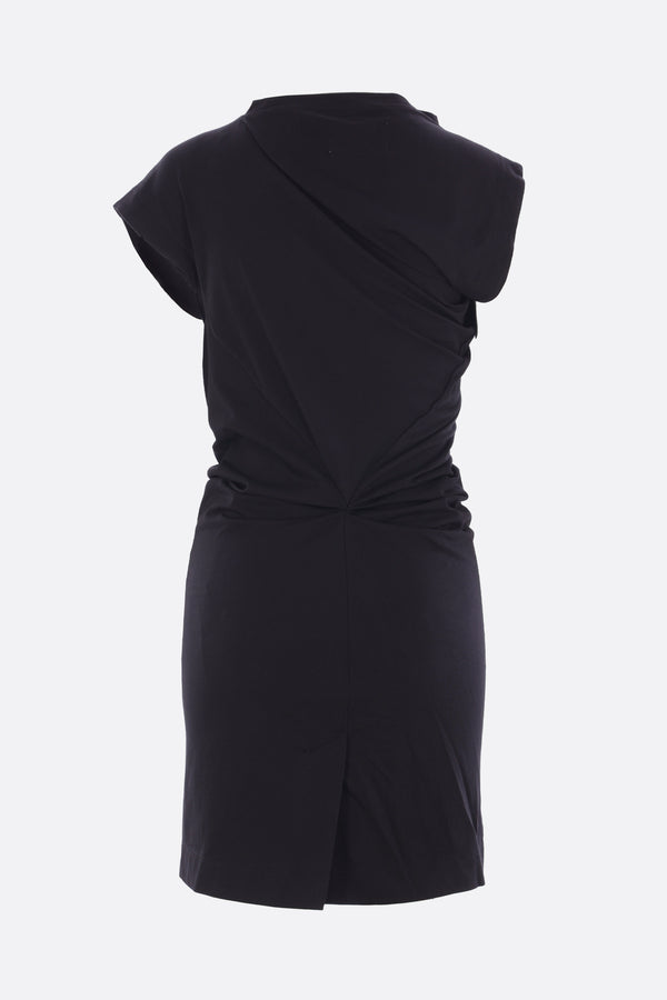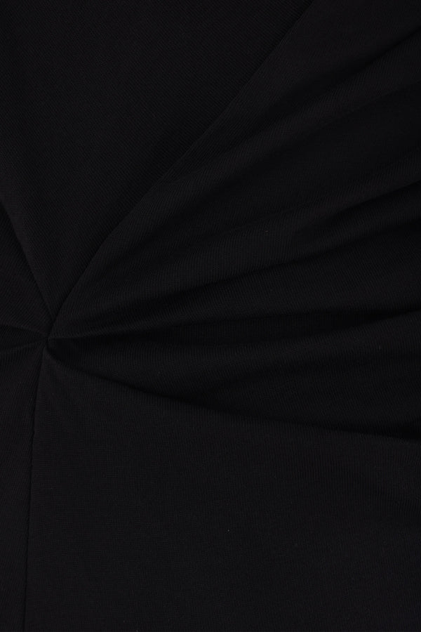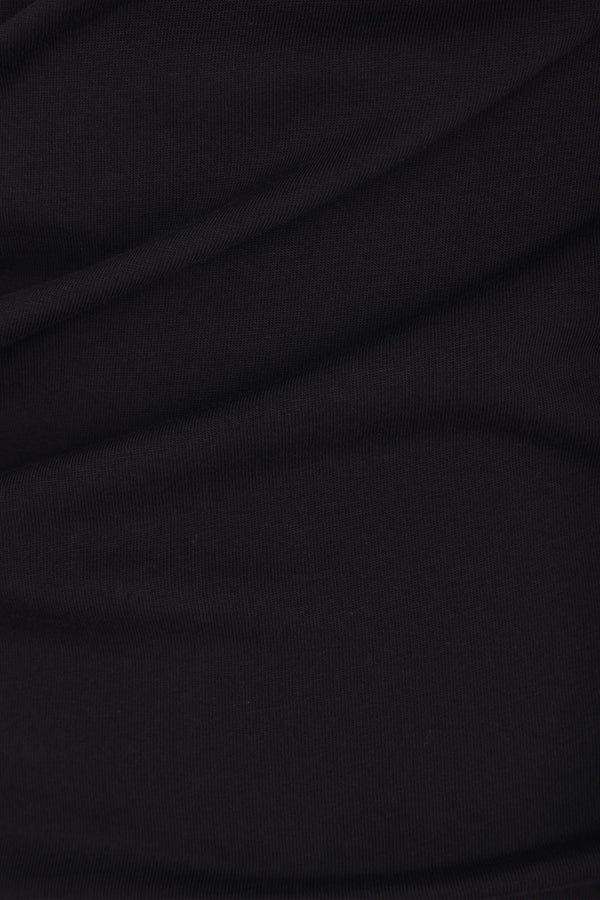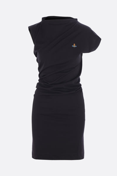 Vivienne Westwood midi dress crafted from black organic cotton jersey. Featuring a crew neckline, asymmetric short sleeves, an Orb logo embroidery on the chest, and a straight hem.
