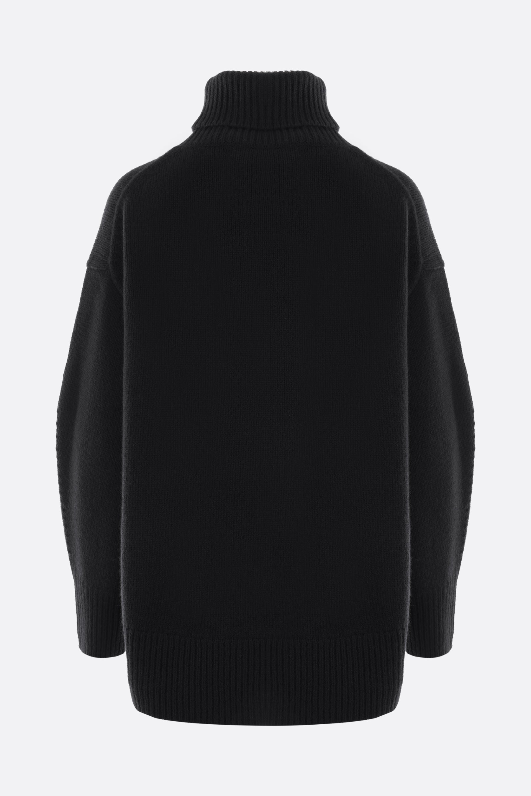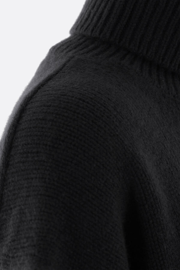 ARCH4 oversized sweater crafted from black cashmere knit. Featuring a high folded collar, long sleeves, and ribbed trims.