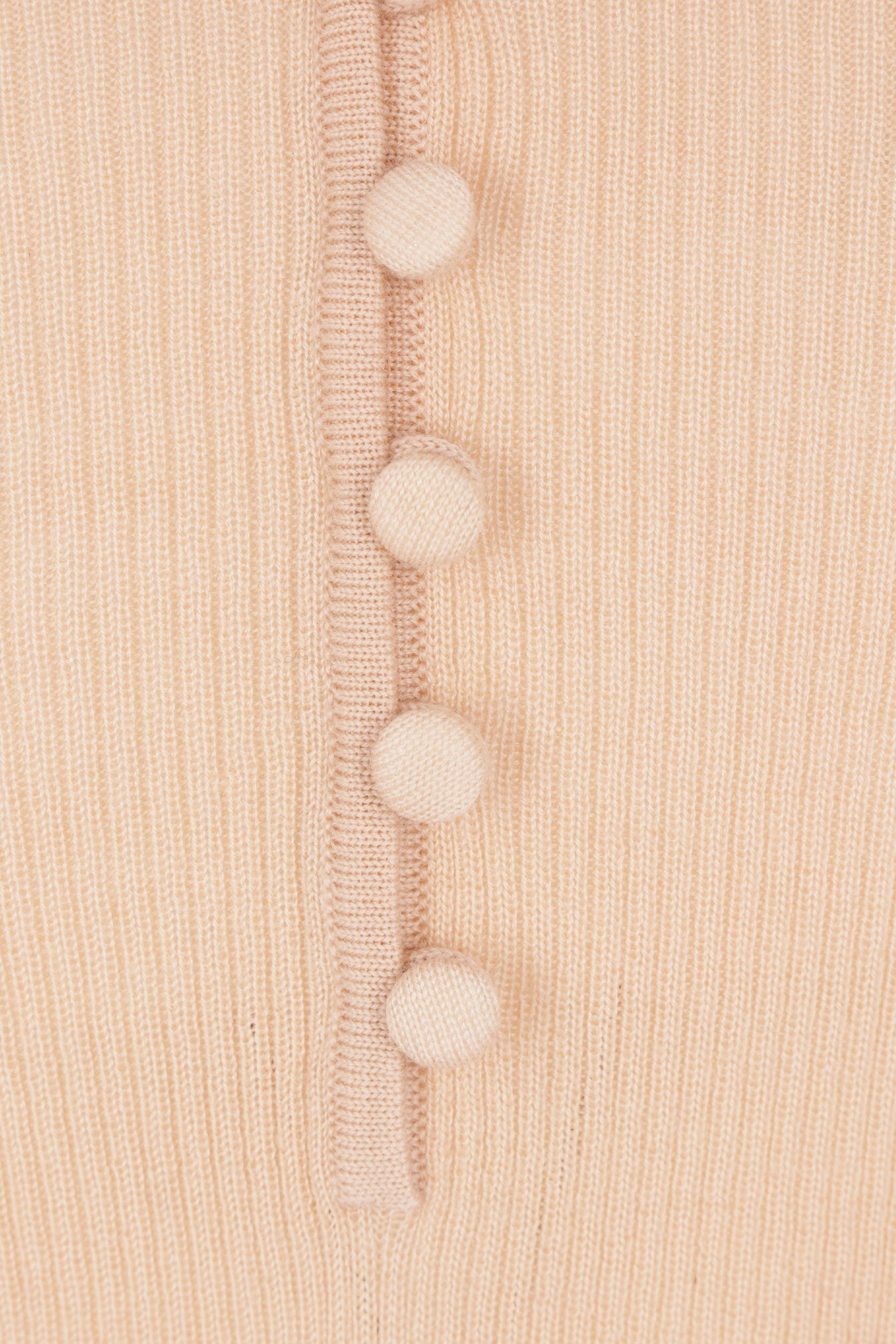 Chloé pullover made of powder pink wool knit. Features a V-neckline with tone-on-tone buttons, long sleeves, and a straight hem.