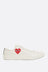 Comme des Garçons Play x Converse's low-top sneakers crafted in black canvas with contrasting toe cap in shiny rubber. Featuring lace-up closure, a round-toe silhouette, fabric lining and rubber sole with logo patch at heel. The design is completed by Filip Pagowski's heart print on side.