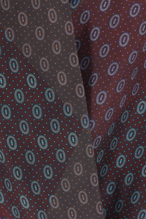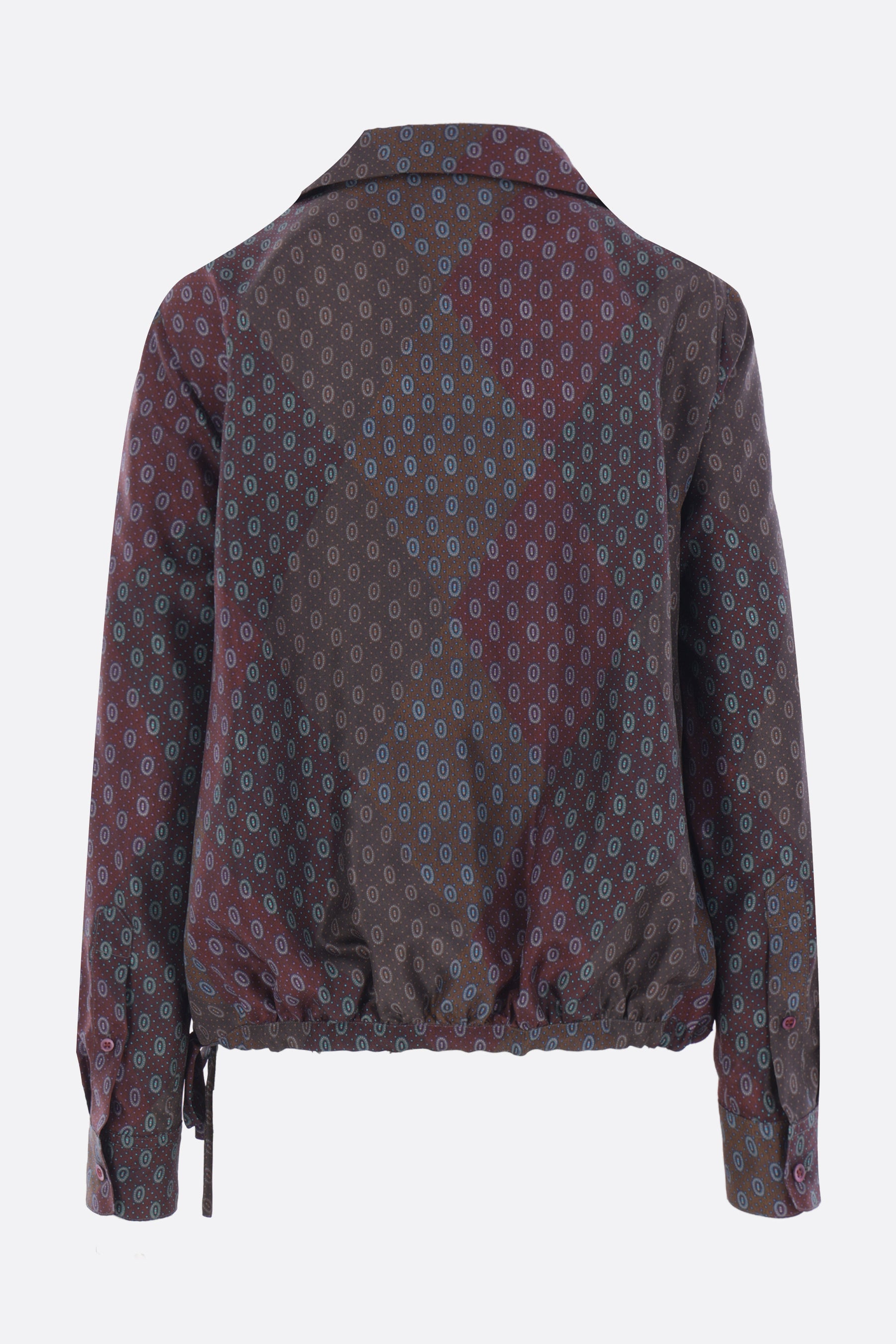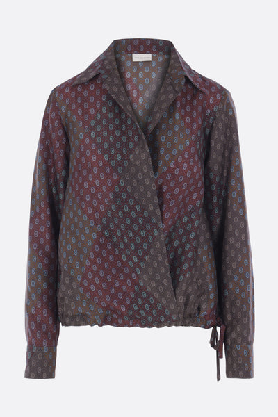Dries Van Noten shirt crafted from printed silk satin. Featuring a classic collar, overlapped front, long sleeves with buttoned cuffs, and a drawstring hem.