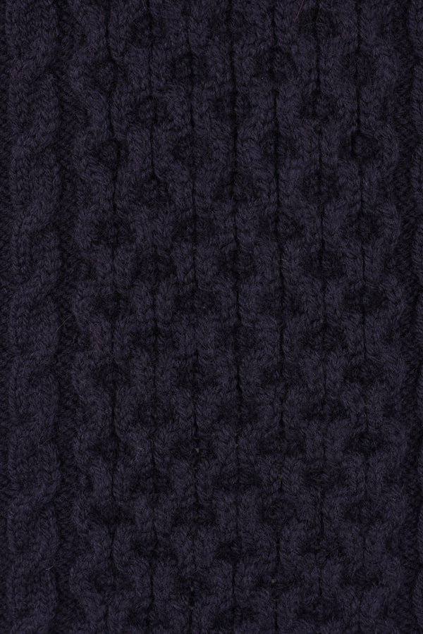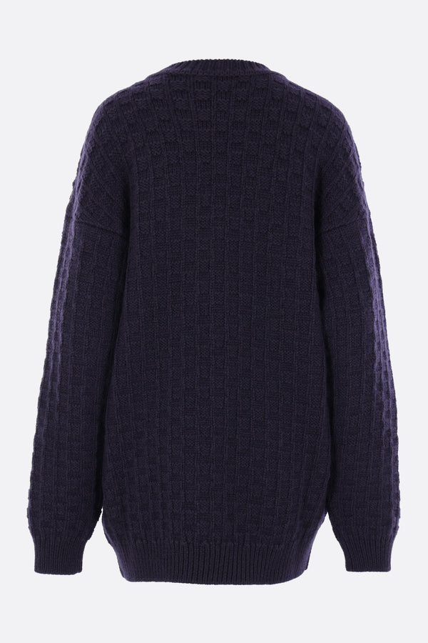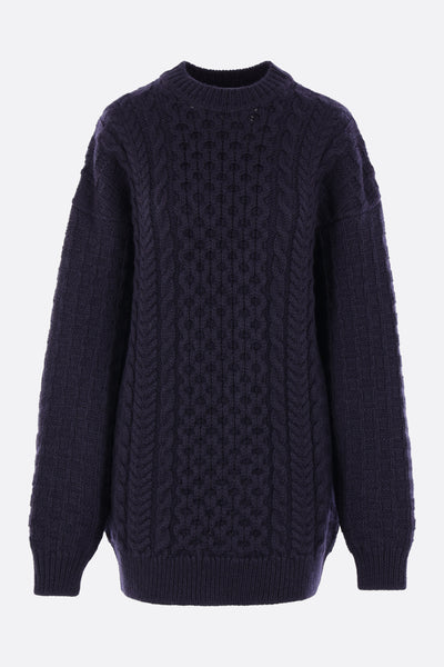 Duran Lantik pullover made of blue cable-knit wool. Featuring a round neckline, long sleeves, ribbed edges, and straight hem.