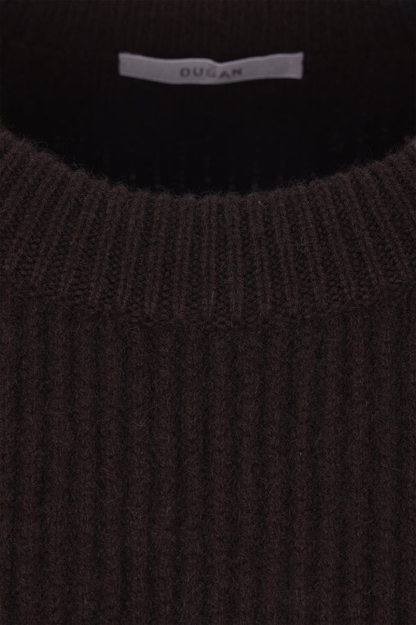 Dusan sweater made of dark brown ribbed cashmere knit. Featuring a crew neckline, long sleeves, and a straight hem.