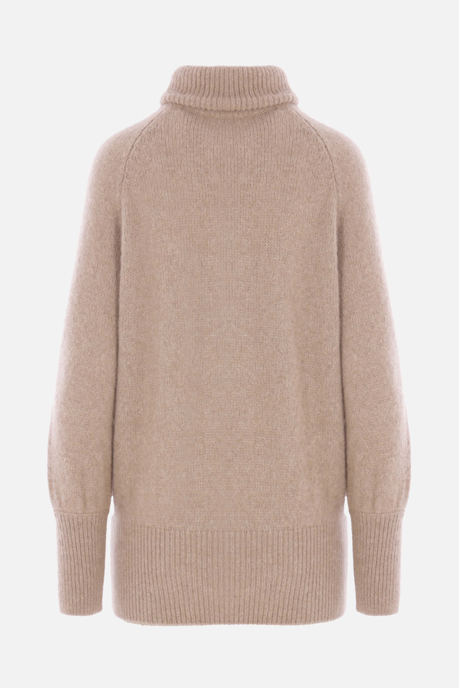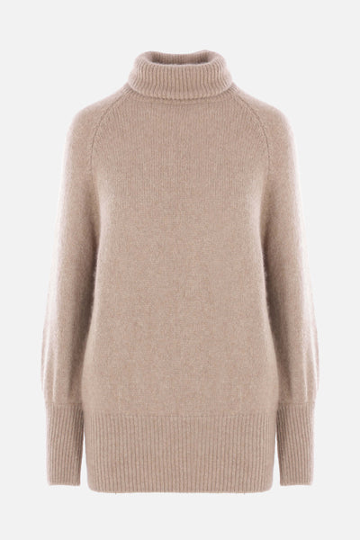 Dusan turtleneck made of beige cashmere and silk knit. Featuring a high collar, raglan sleeves, and ribbed trims.