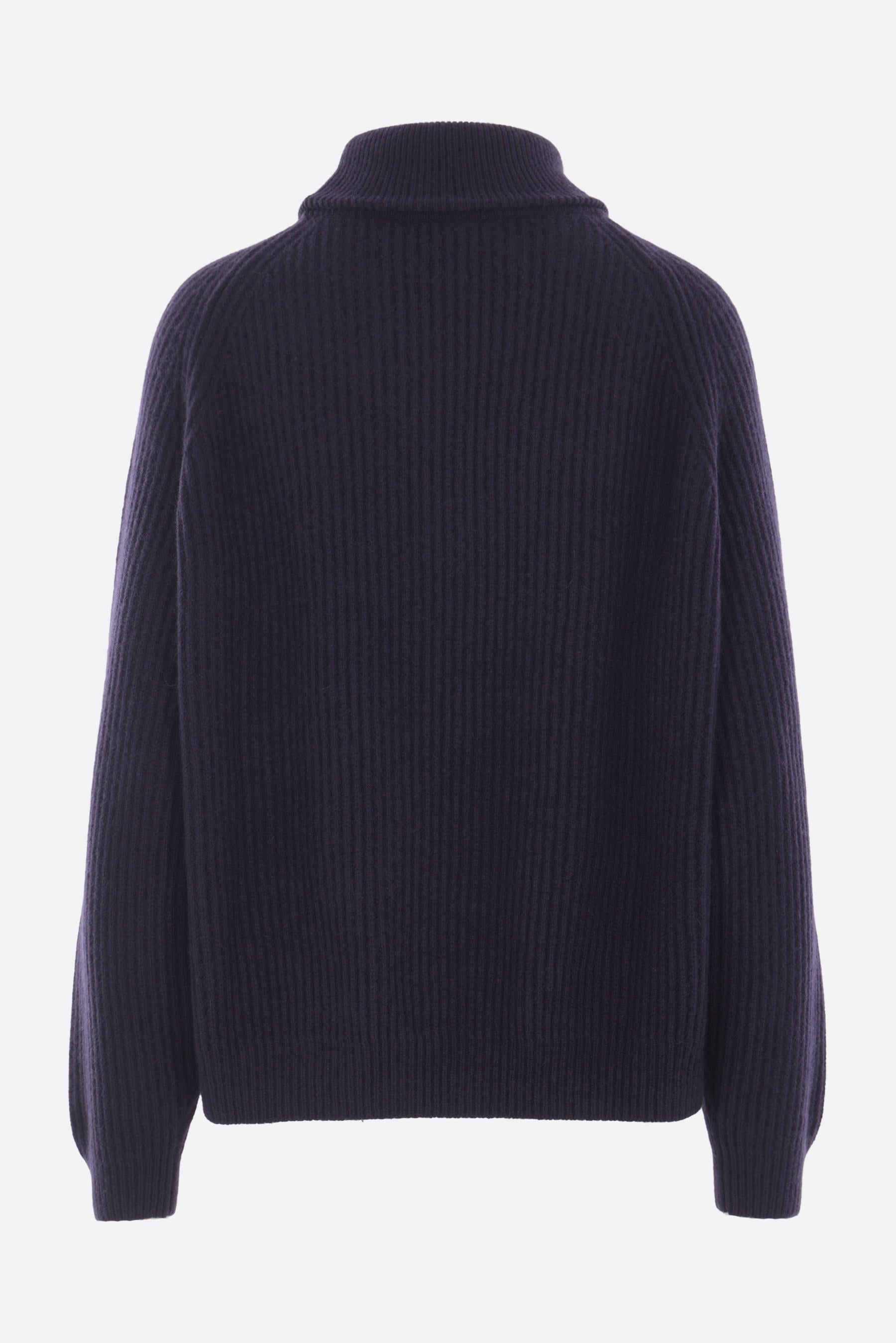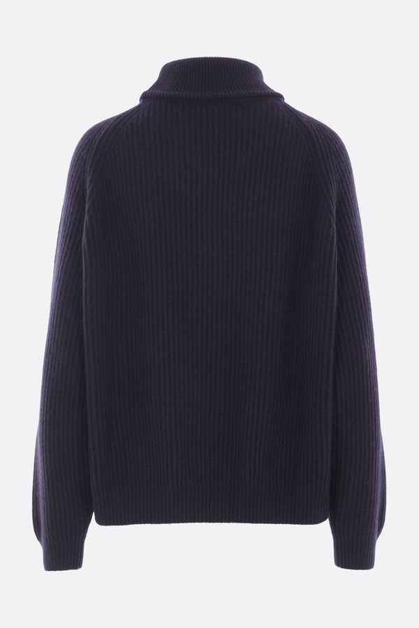 Dusan turtleneck made of ribbed dark blue cashmere knit. Featuring a high neck, long sleeves, and a straight hem.