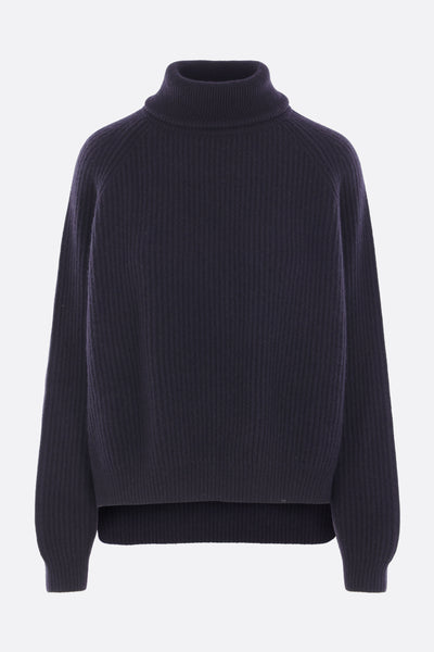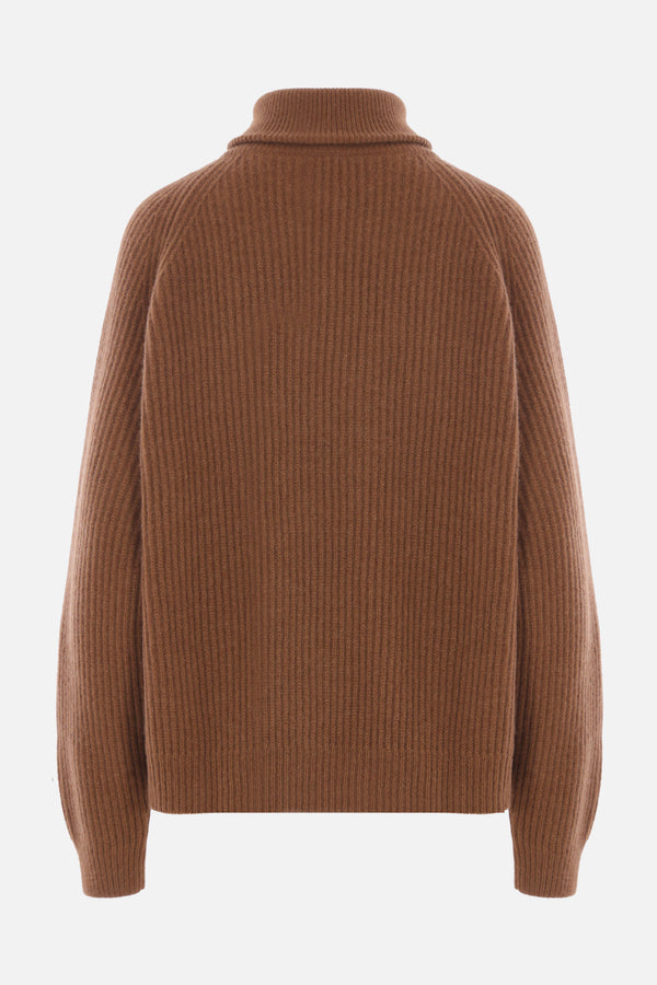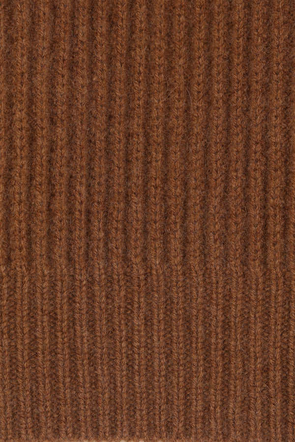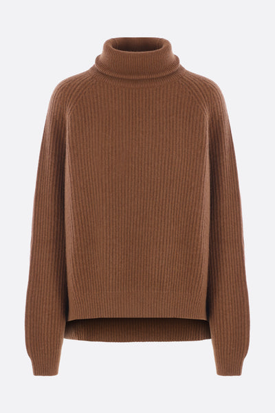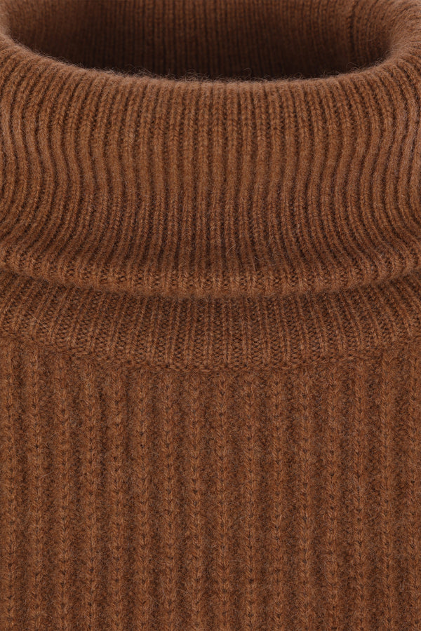 Dusan turtleneck made of ribbed light brown cashmere knit. Featuring a high neck, long sleeves, and a straight hem.