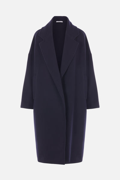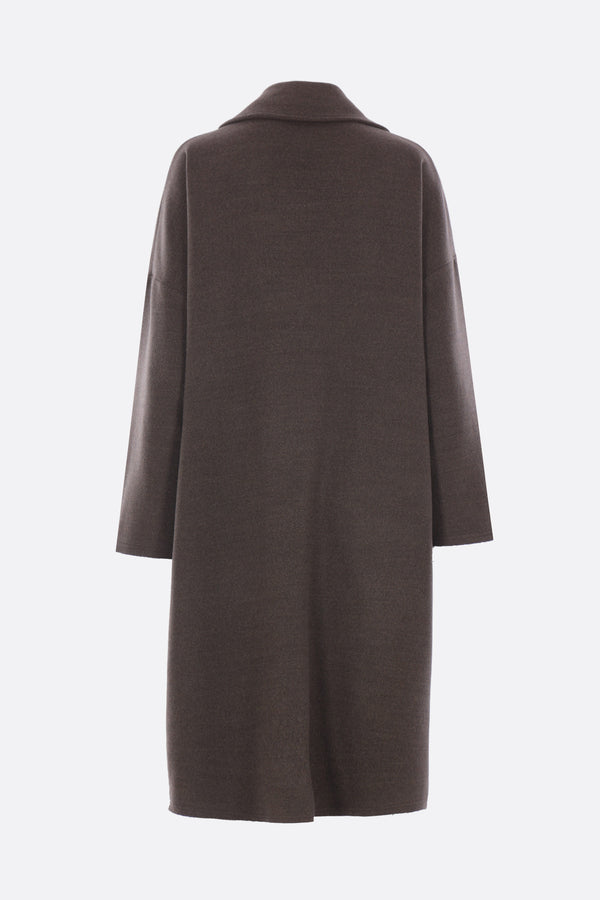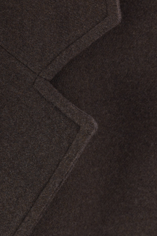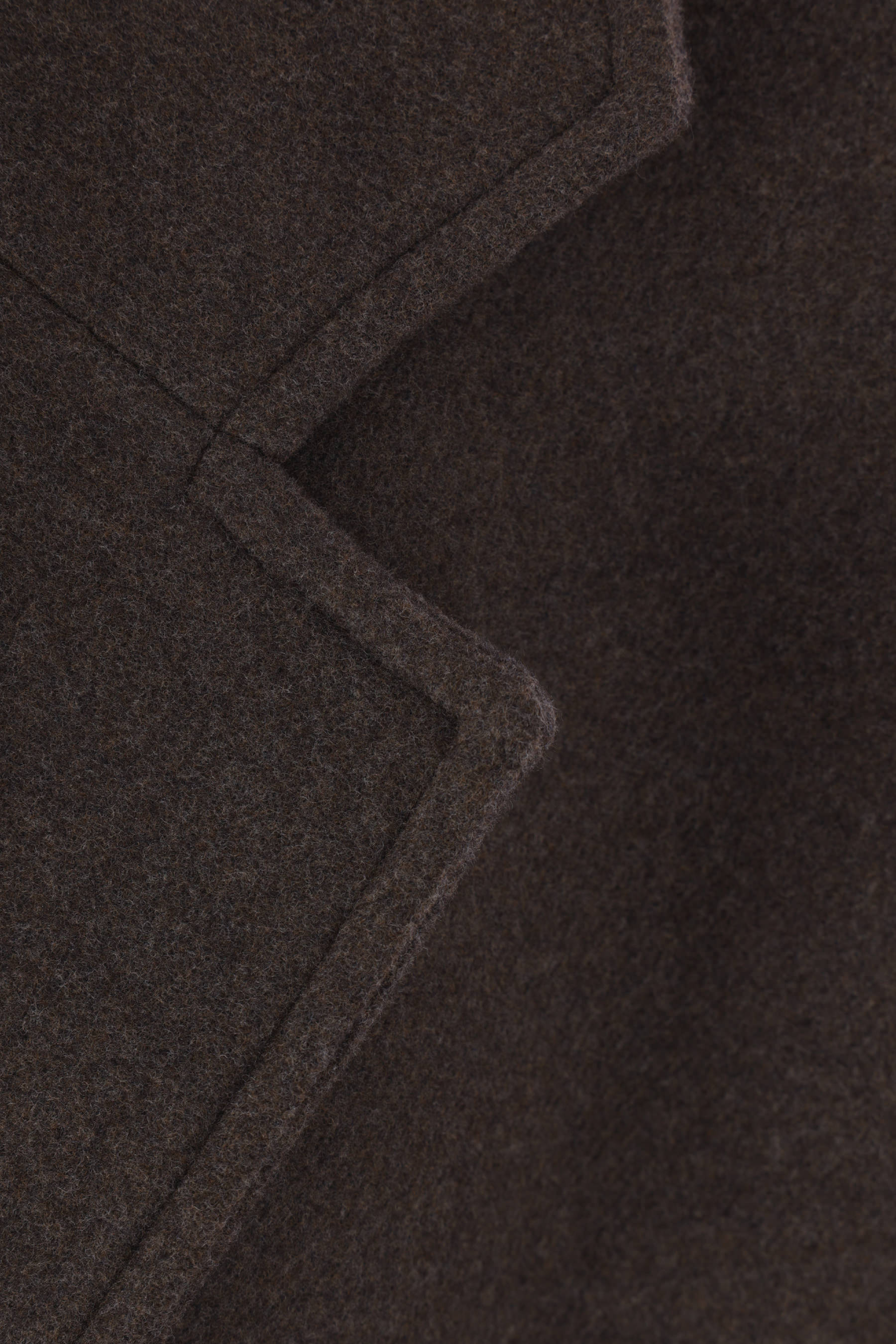 Dusan oversized coat made of military green wool cloth. Featuring wide lapels, welt pockets, long sleeves, a straight hem, and raw-cut edges. Unlined interior.