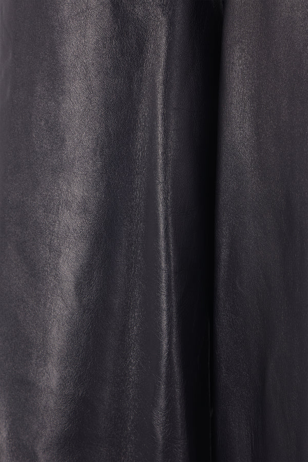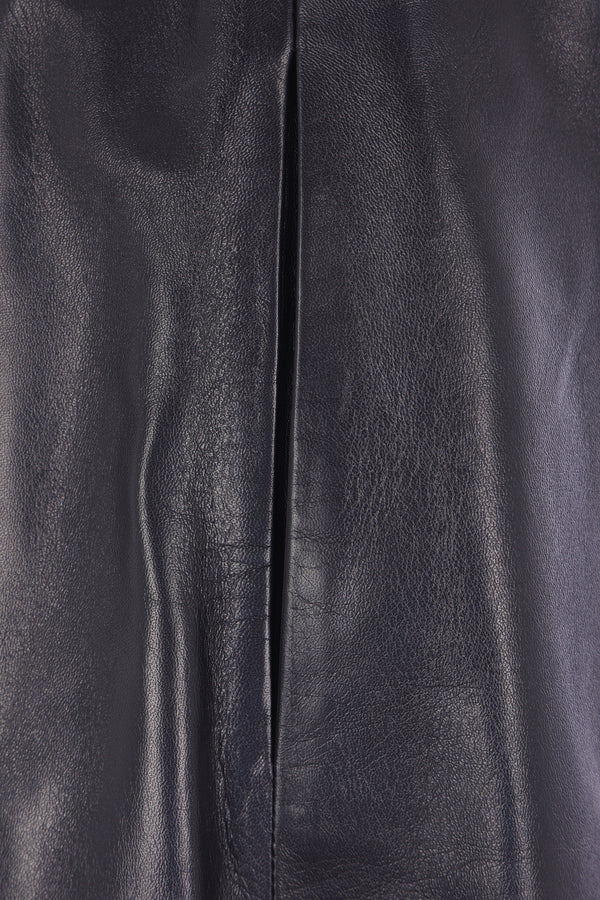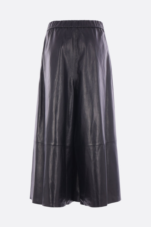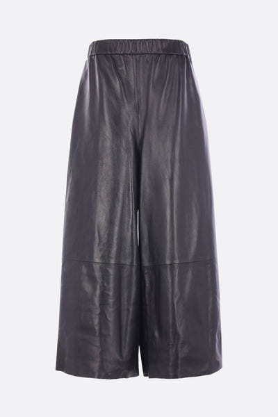 Dusan culotte trousers made of dark blue leather. Featuring an elastic waistband, concealed side pockets, and an unlined interior.
