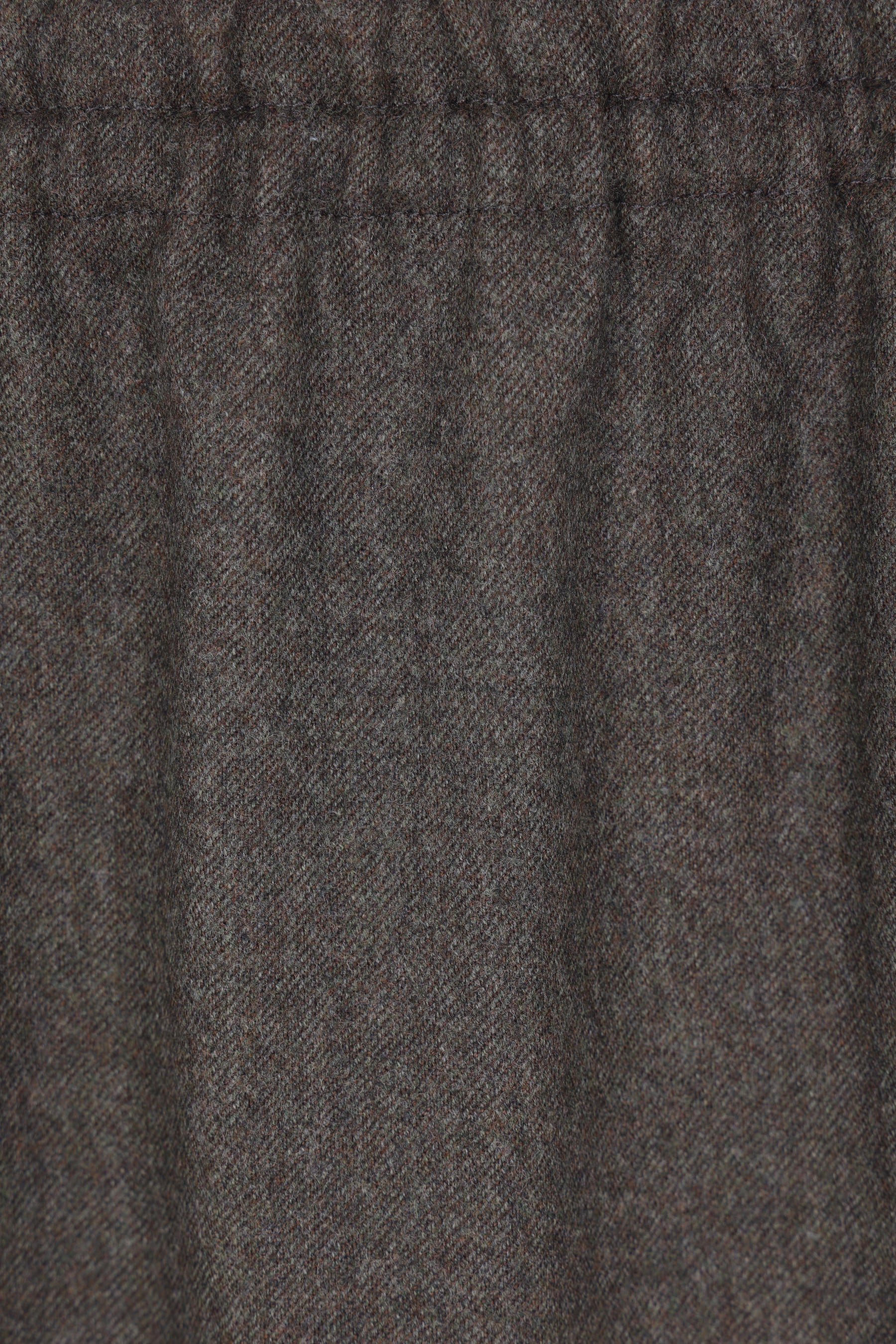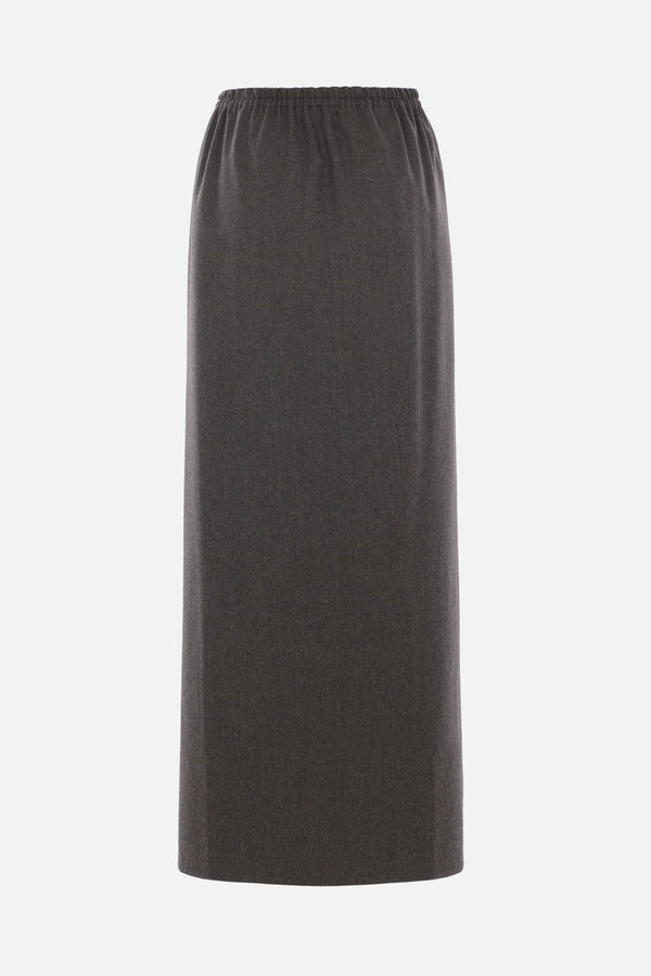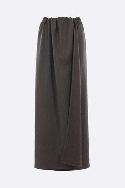 Dusan sarong skirt made of dark green wool. Featuring an elastic waistband, side drape detail, and an unlined interior.