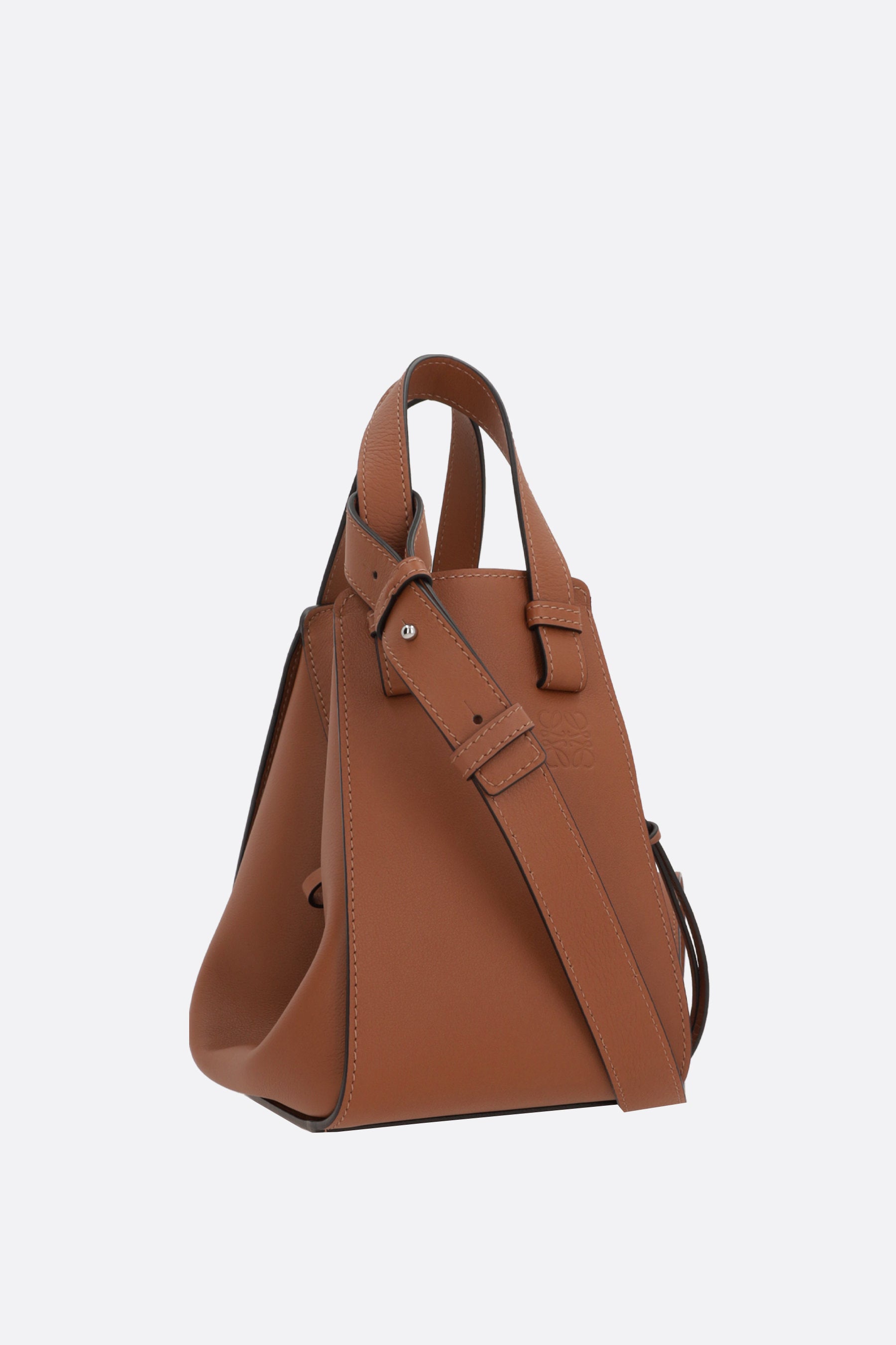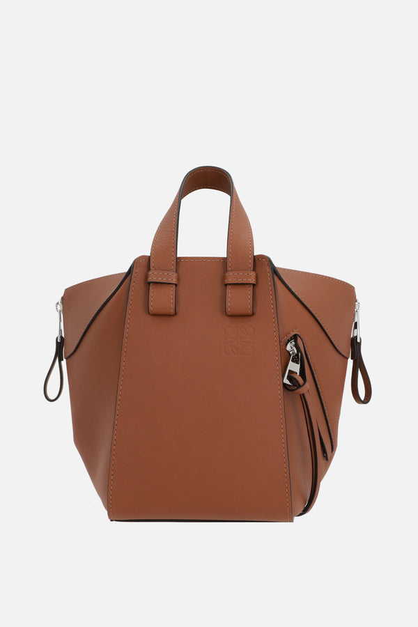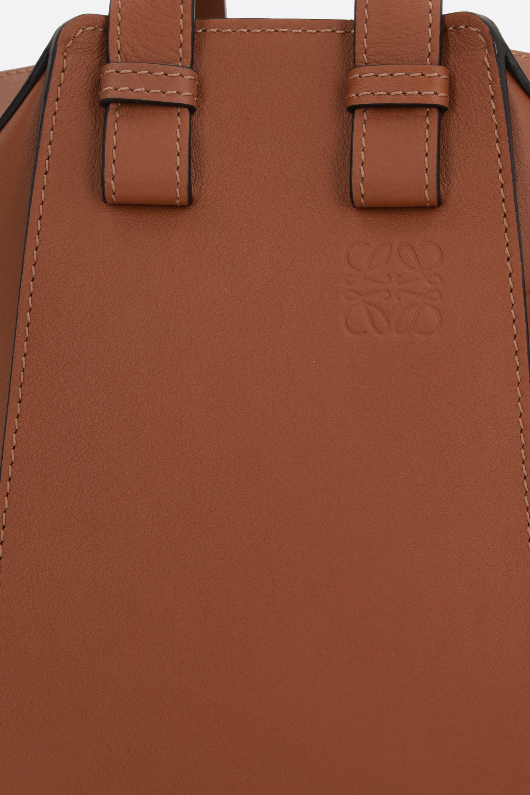 Loewe handbag crafted from tan-colored Classic leather. Featuring silver-tone hardware, an internal hook closure, double handles, and an adjustable/removable shoulder strap. The interior, lined in black canvas, includes two flat pockets. The design is completed by a side zip pocket and the signature Anagram logo embossed on the front.