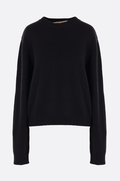 Meta Campania Collective pullover made of black cashmere knit. Featuring a round neckline, long sleeves, ribbed edges, and straight hem.