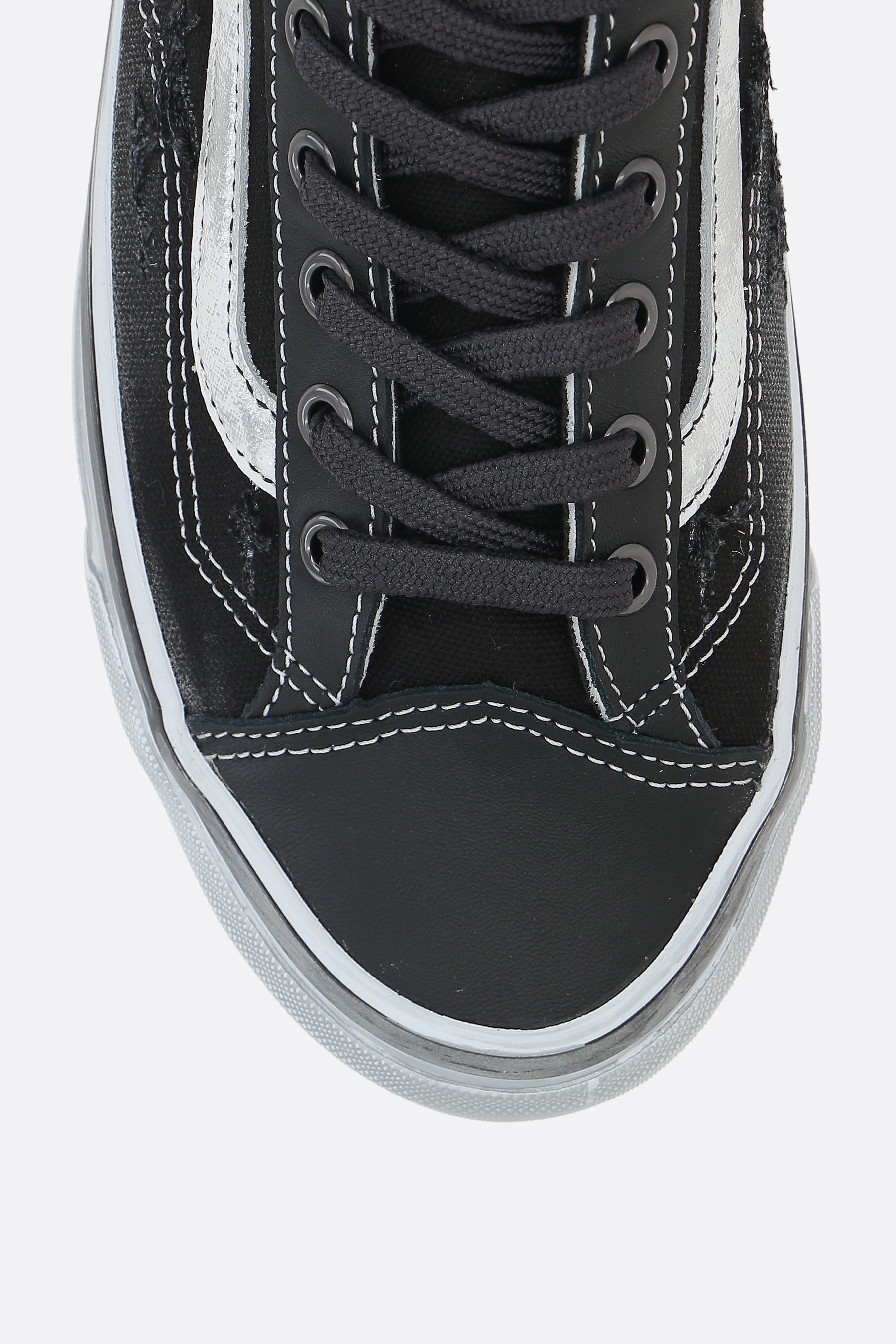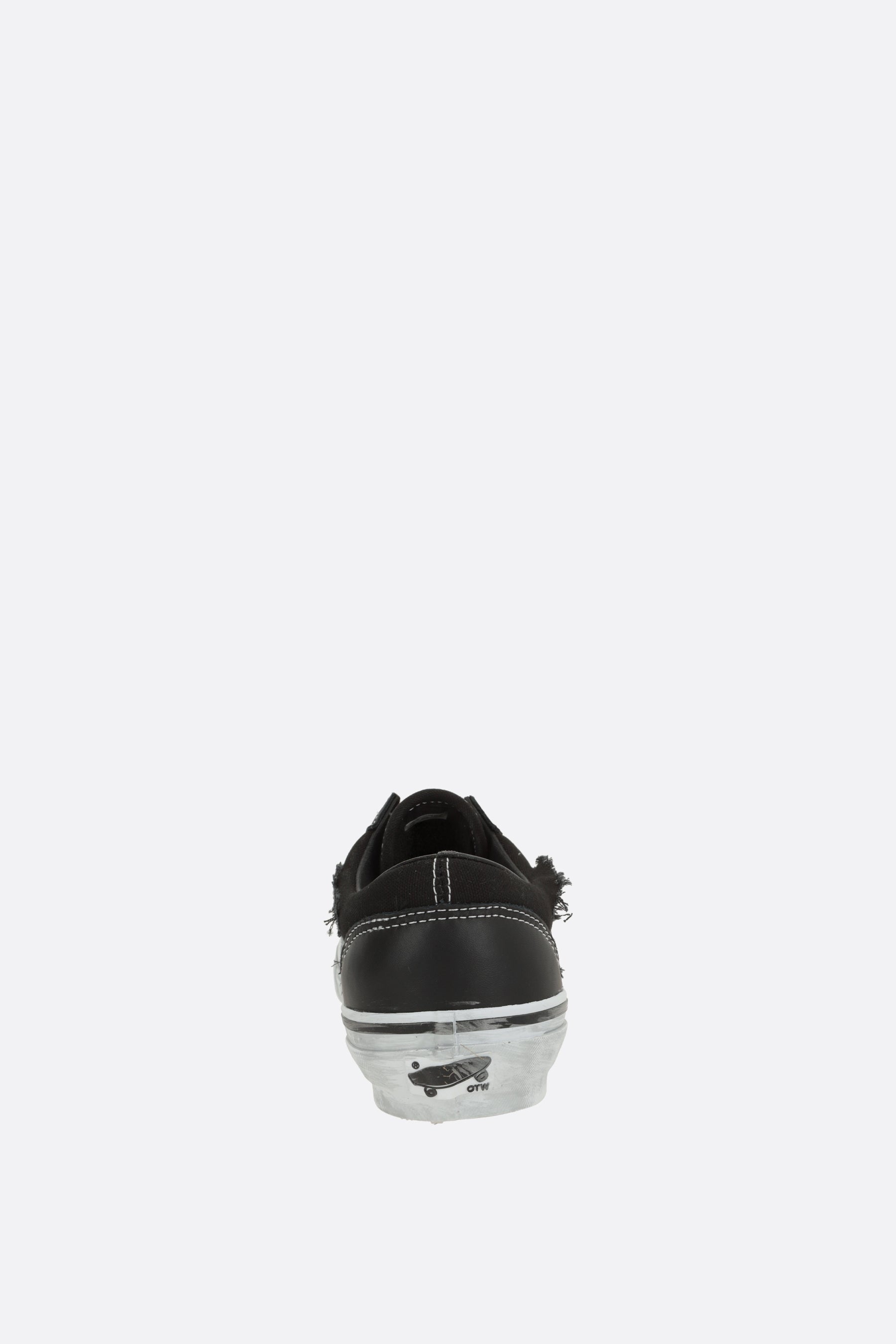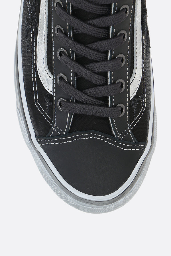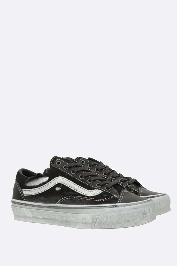 Vans low-top sneakers crafted from washed black canvas with distressed effect and smooth and laminated leather details. Featuring lace-up fastening, a round toe, fabric lining, and a laminated-effect Vibram rubber sole.