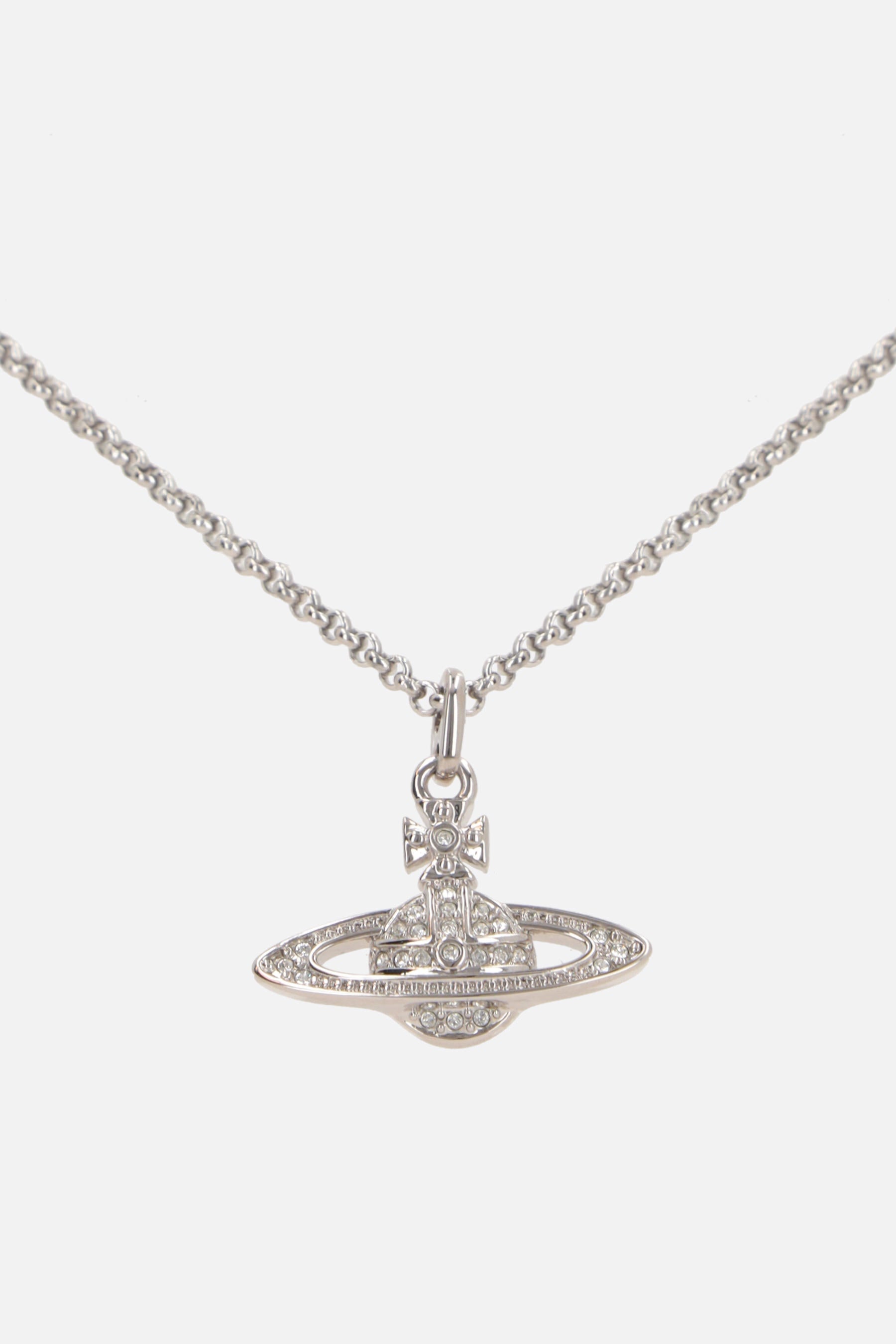 Vivienne Westwood necklace crafted in platinum-finish brass with Orb pendant embellished by clear crystals. It features adjustable lobster clasp fastening.