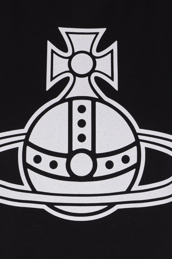 Vivienne Westwood t-shirt crafted from black cotton jersey with a front-printed Paris Orb Classic logo. Featuring a crew neckline, short sleeves, and a straight hem.