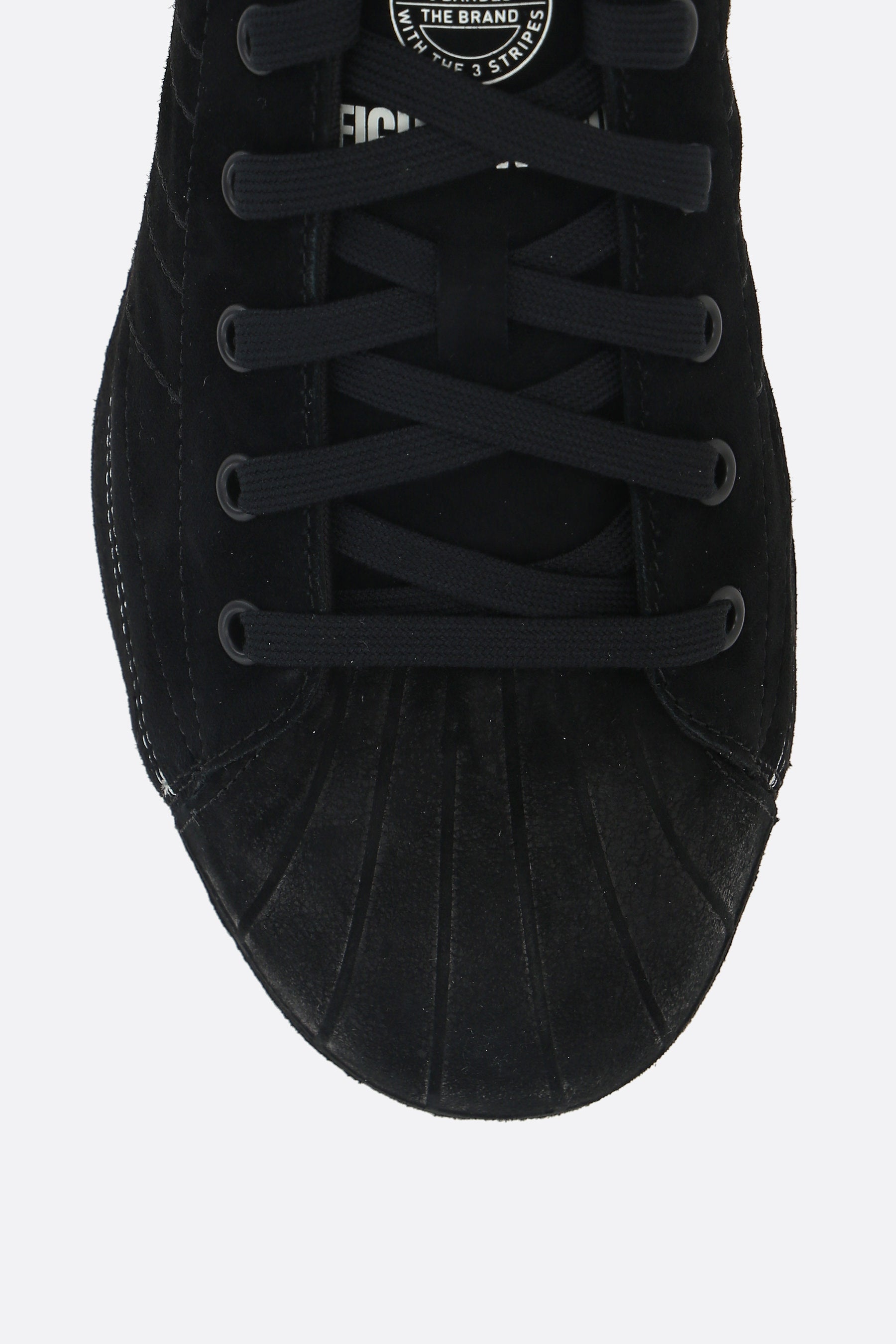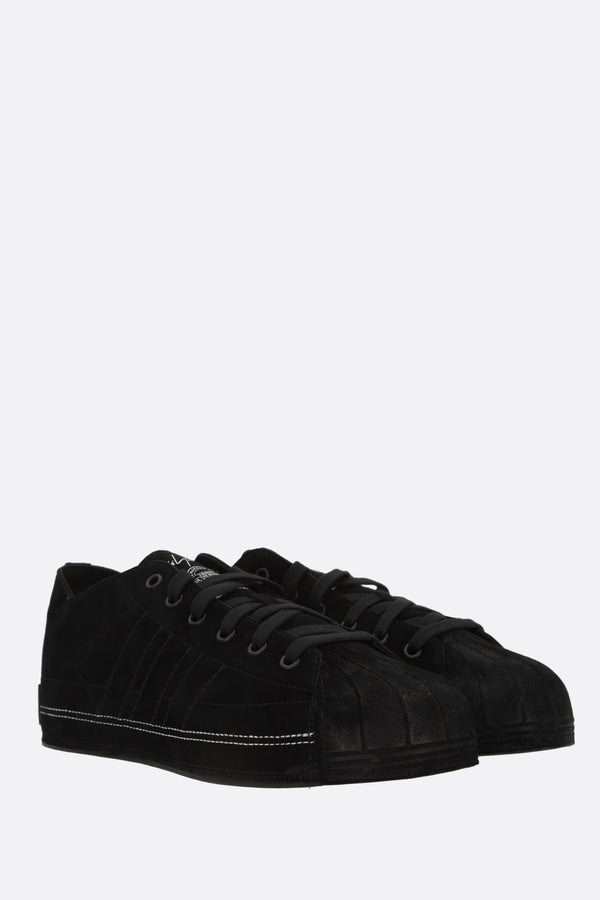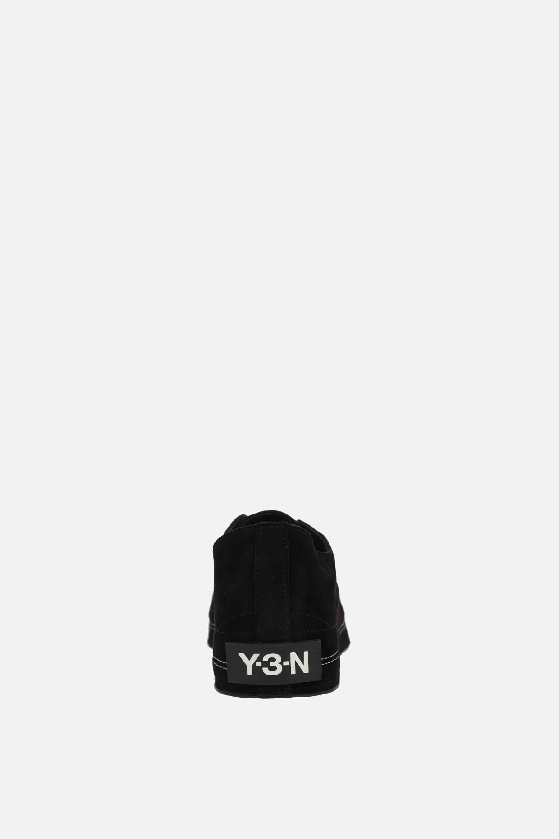 Y-3 x Neighborhood low-top sneakers crafted from black suede with 3-stripes embroidery on the sides. Features lace-up closure, shell toe, fabric lining, and a rubber sole. The design is completed by the Yohji Yamamoto / Neighborhood signature on the tongue and the Y-3-N patch on the heel.