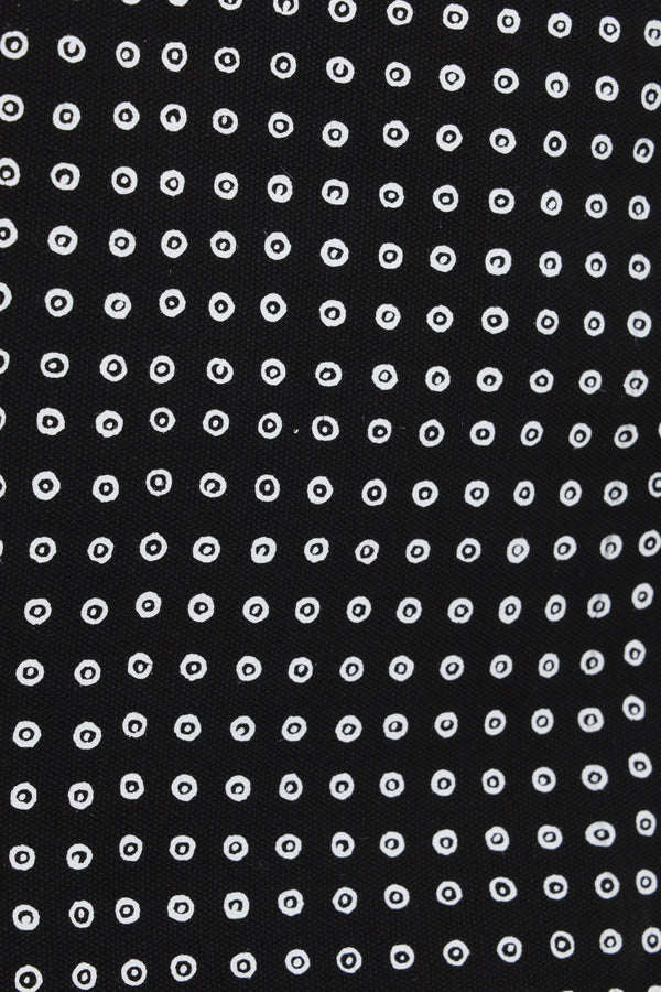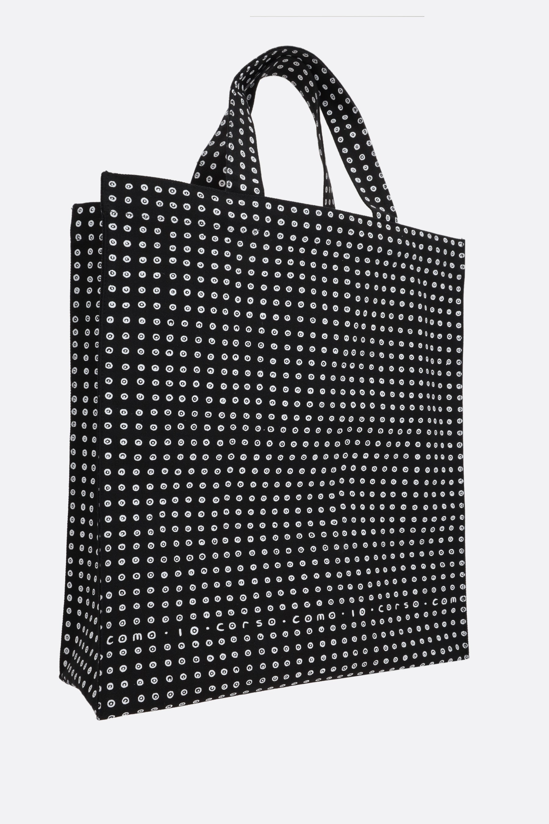 10 Corso Como's shopping bag crafted in black cotton canvas with contrasting signature circles and logo print. It features double handle and unlined interior.