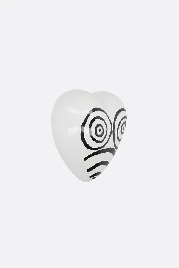 10 Corso Como heart shaped paper weight crafted in white glized ceramic and embellished with the exclusive Circle Eyes graphic and 10 Corso Como logo.