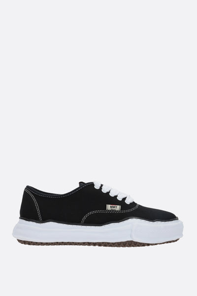 Maison Mihara Yasuhiro low-top sneakers crafted in bright blue canvas. Featuring lace-up closure, a round-toe silhouette, fabric lining and irregular rubber sole. The design is completed by the iconic MMY label on tongue.