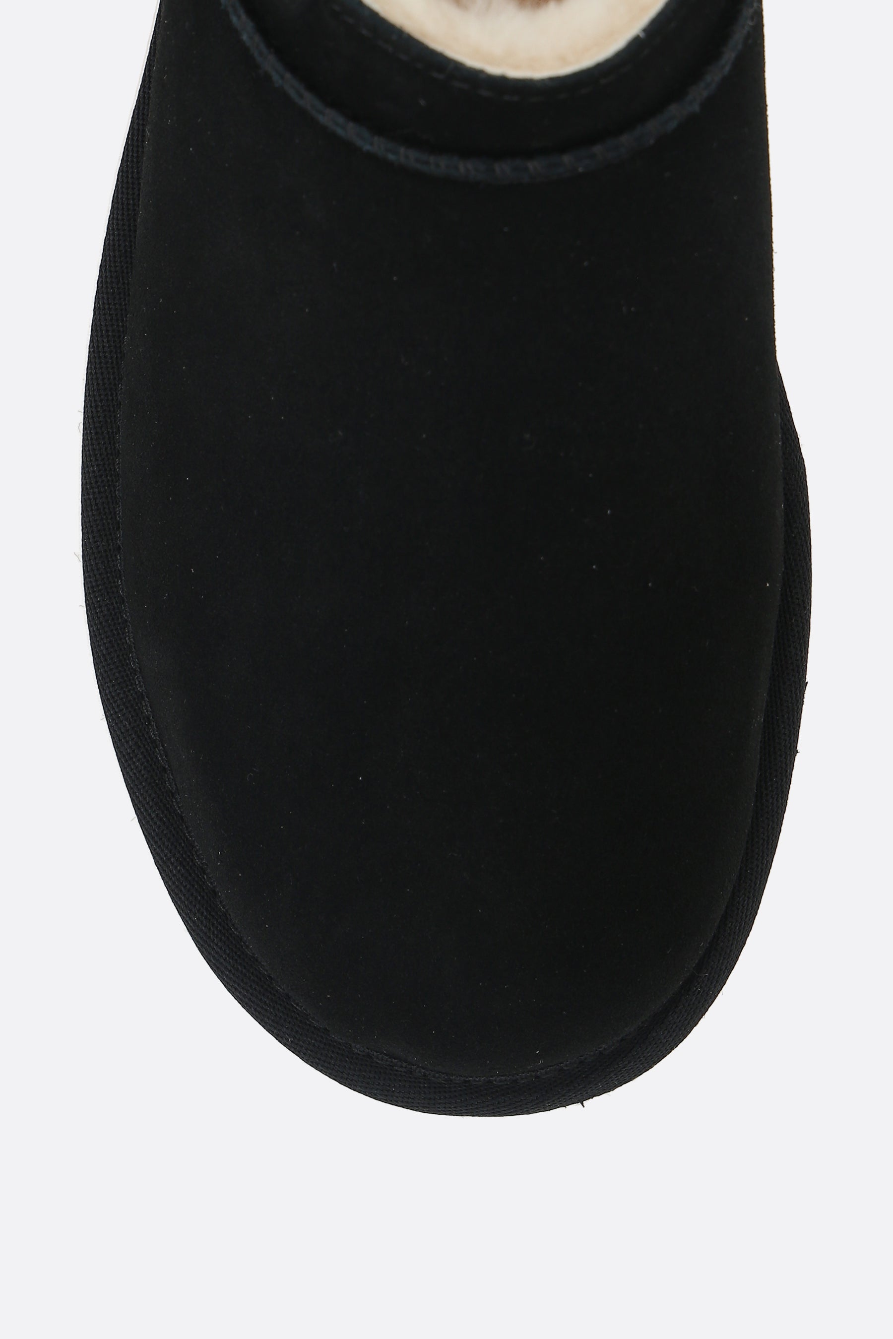 Ugg ankle boots crafted from black suede. Characterized by a round toe, shearling linings, and a sugarcane EVA sole. The design is completed by the iconic Ugg patch on the heel.