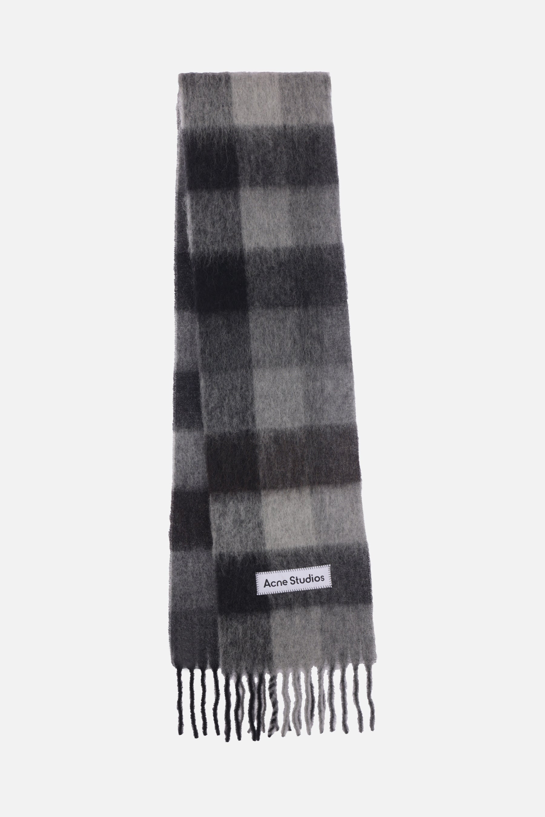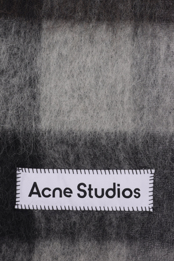 Acne Studios scarf crafted in multicolor checked alpaca wool blend with the iconic logo patch. Featuring fringing at both ends.