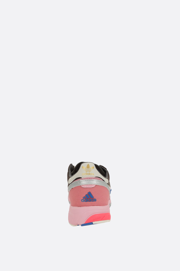Sneaker by adidas designed in collaboration with Bad Bunny, crafted from fabric and leather. Featuring lace-up closure, round toe, fabric lining, and a textured rubber sole.