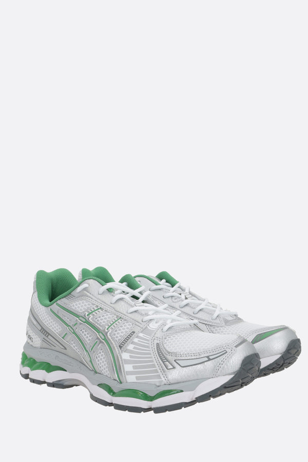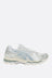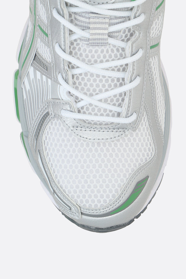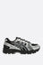 Asics low-top sneakers crafted in white mesh and silver-tone laminated faux leather. Featuring lace-up closure, a round-toe silhouette, fabric lining, GEL inserts in the heel and forefoot and textured rubber sole. The design is completed by the iconic logo patch on tongue.