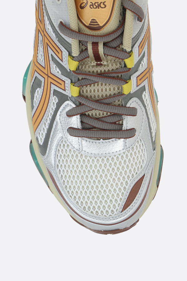 Asics low-top sneakers crafted in white mesh and khaki / silver-colored faux leather. Featuring lace-up closure, a round-toe silhouette, fabric lining and textured rubber sole with Ortholite® technology. The design is completed by the iconic logo patch on tongue.