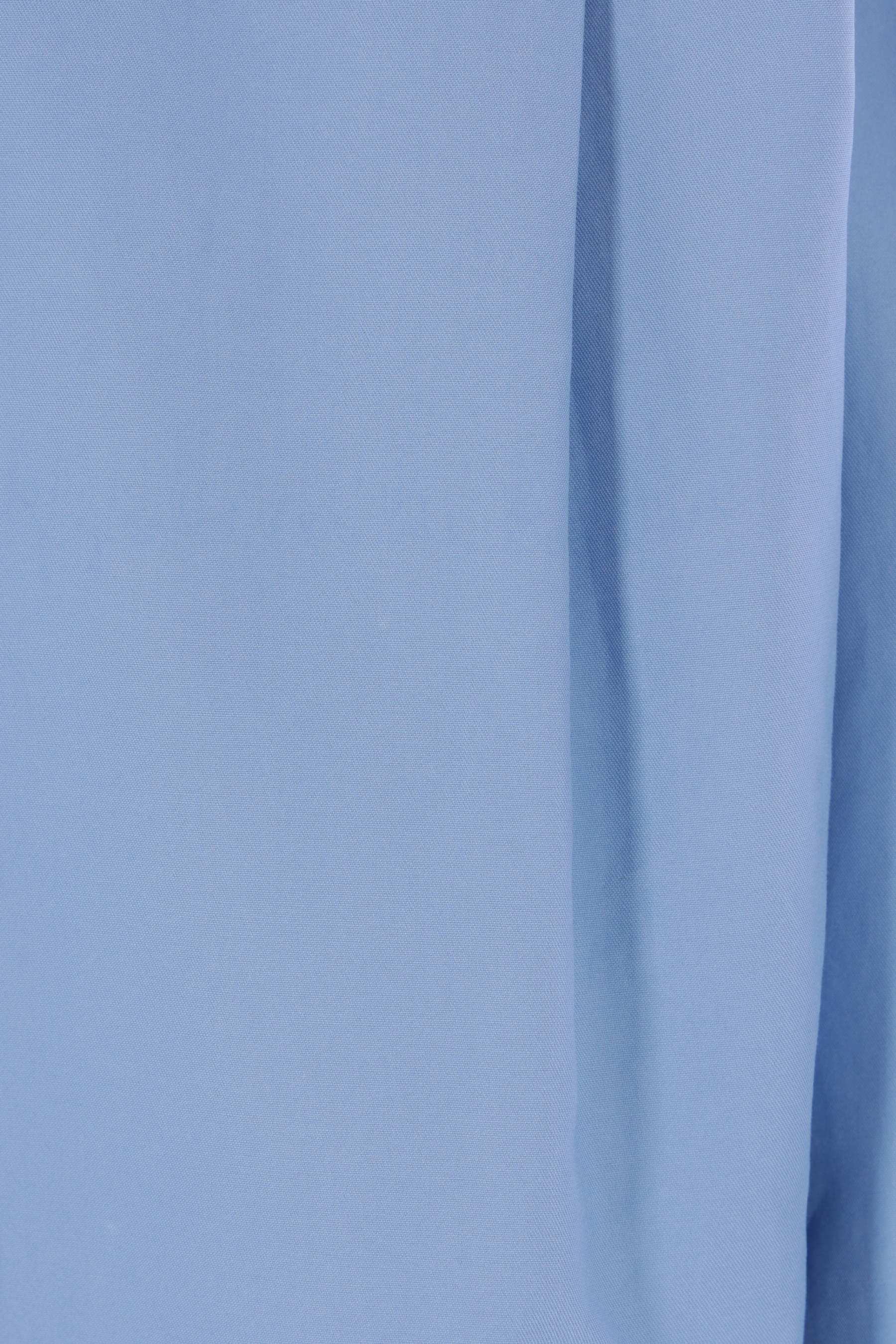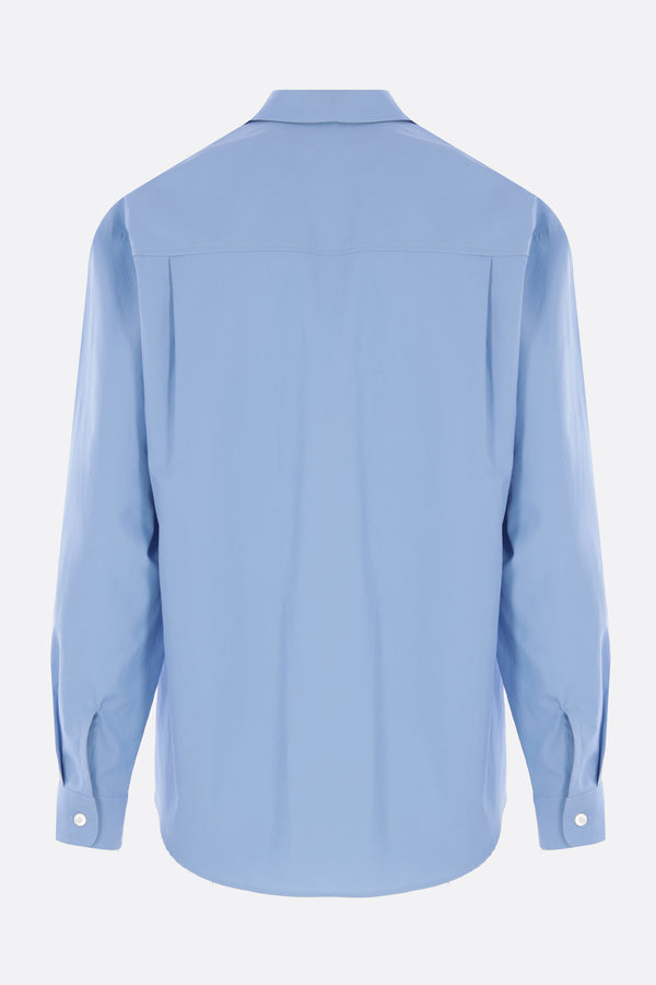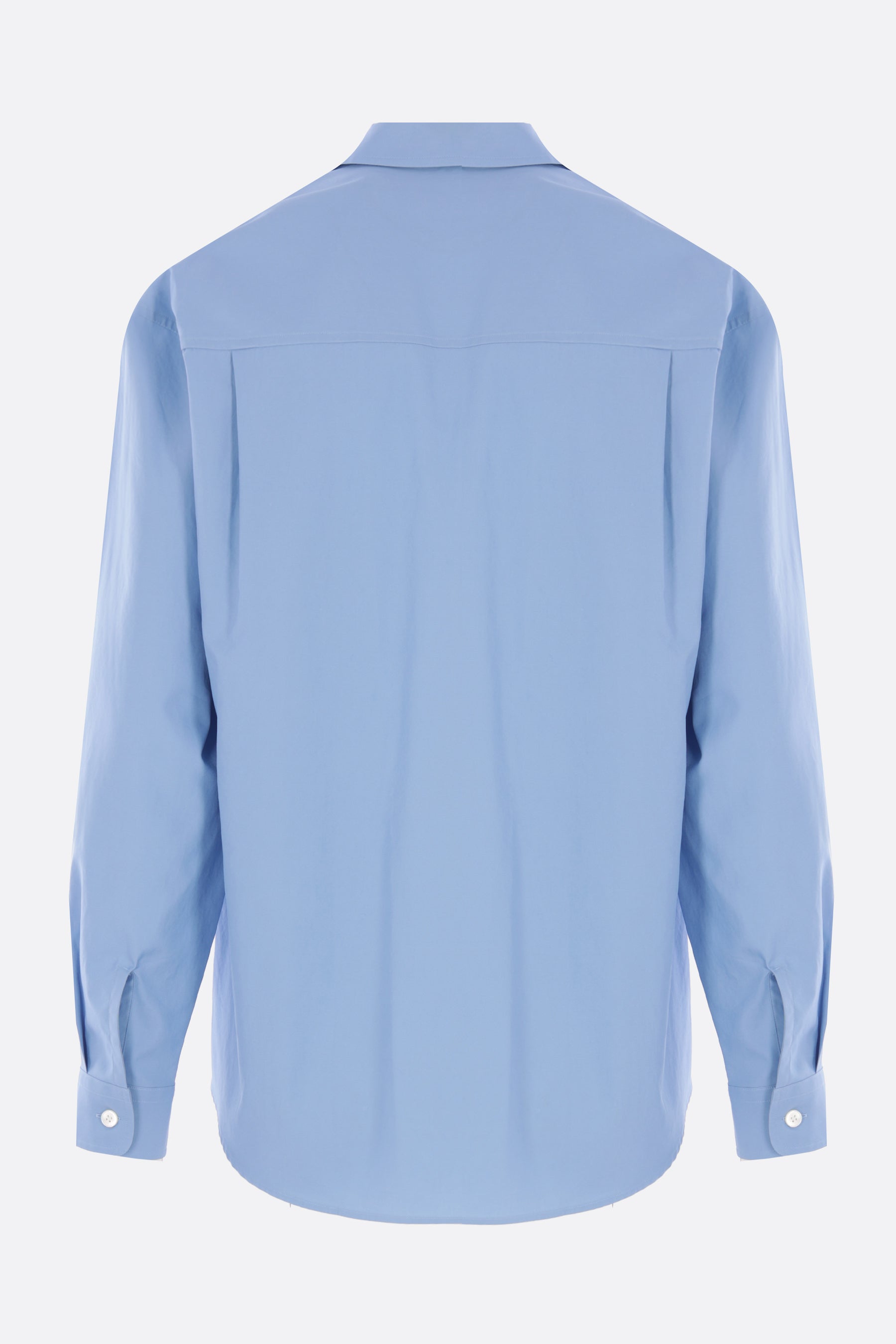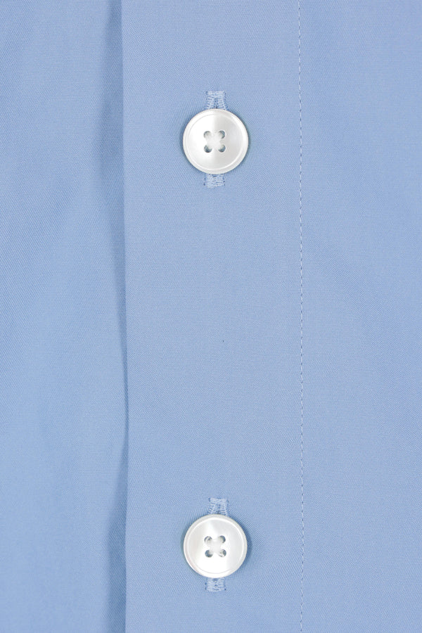 Auralee oversized shirt crafted from light blue cotton twill. Featuring a classic collar, front button fastening, chest patch pocket, long sleeves with buttoned cuffs, and a rounded hem.