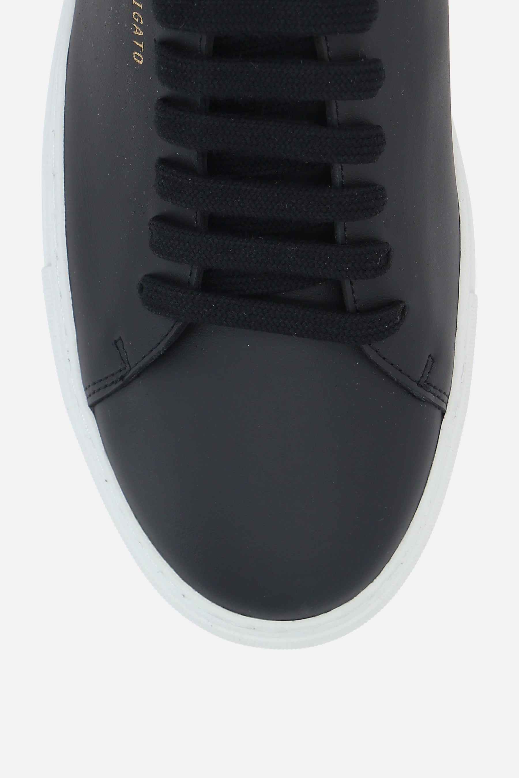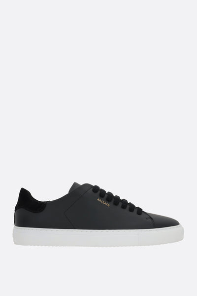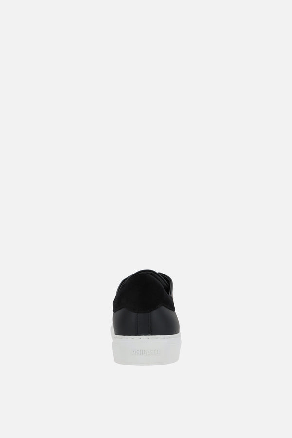 Axel Arigato low-top sneakers crafted in black smooth leather with tone-on-tone suede heel tab. Featuring lace-up closure, a round-toe silhouette, leather lining and recycled rubber sole. The design is completed by logo print on side.