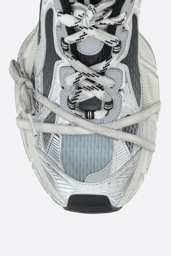 Balenciaga low-top sneakers crafted in black mesh and rubber with worn-out effect and reflective details. Featuring lace-up closure, a round-toe silhouette, raised logo at the tip of the toe and shoes size embossed at heel. Fabric lining and 3XL rubber sole.