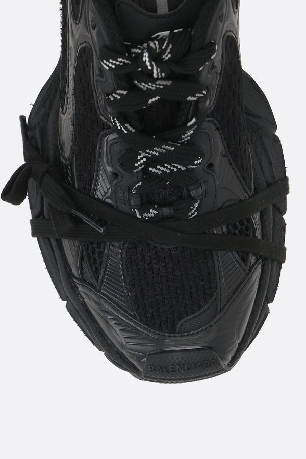 Balenciaga low-top sneakers crafted in black mesh and rubber with worn-out effect and reflective details. Featuring lace-up closure, a round-toe silhouette, raised logo at the tip of the toe and shoes size embossed at heel. Fabric lining and 3XL rubber sole.