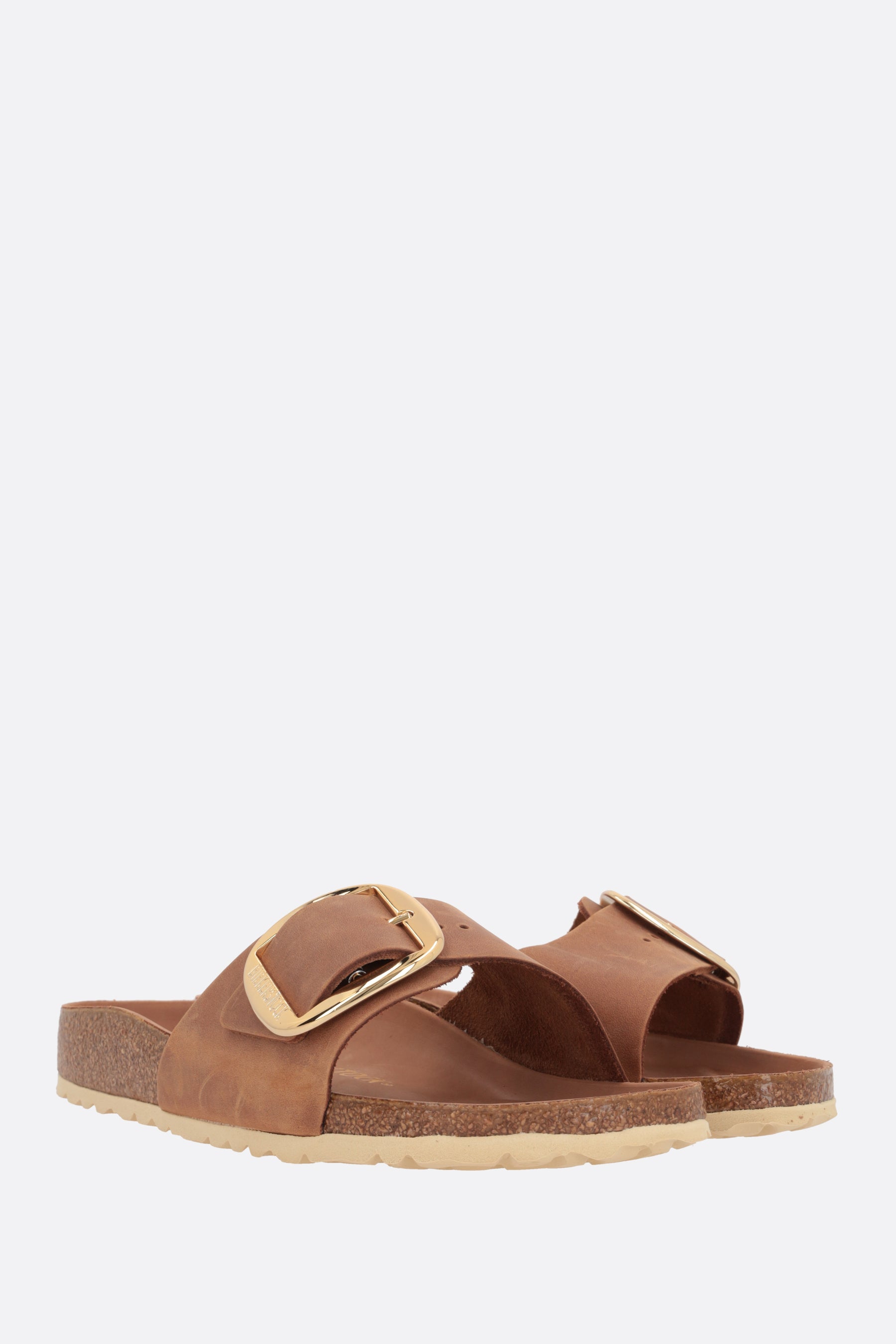 Madrid Big Buckle slide sandals in oiled leather (Narrow Fit)