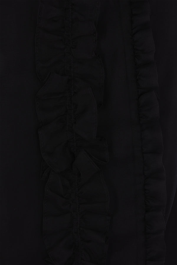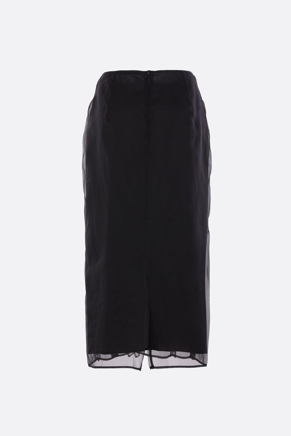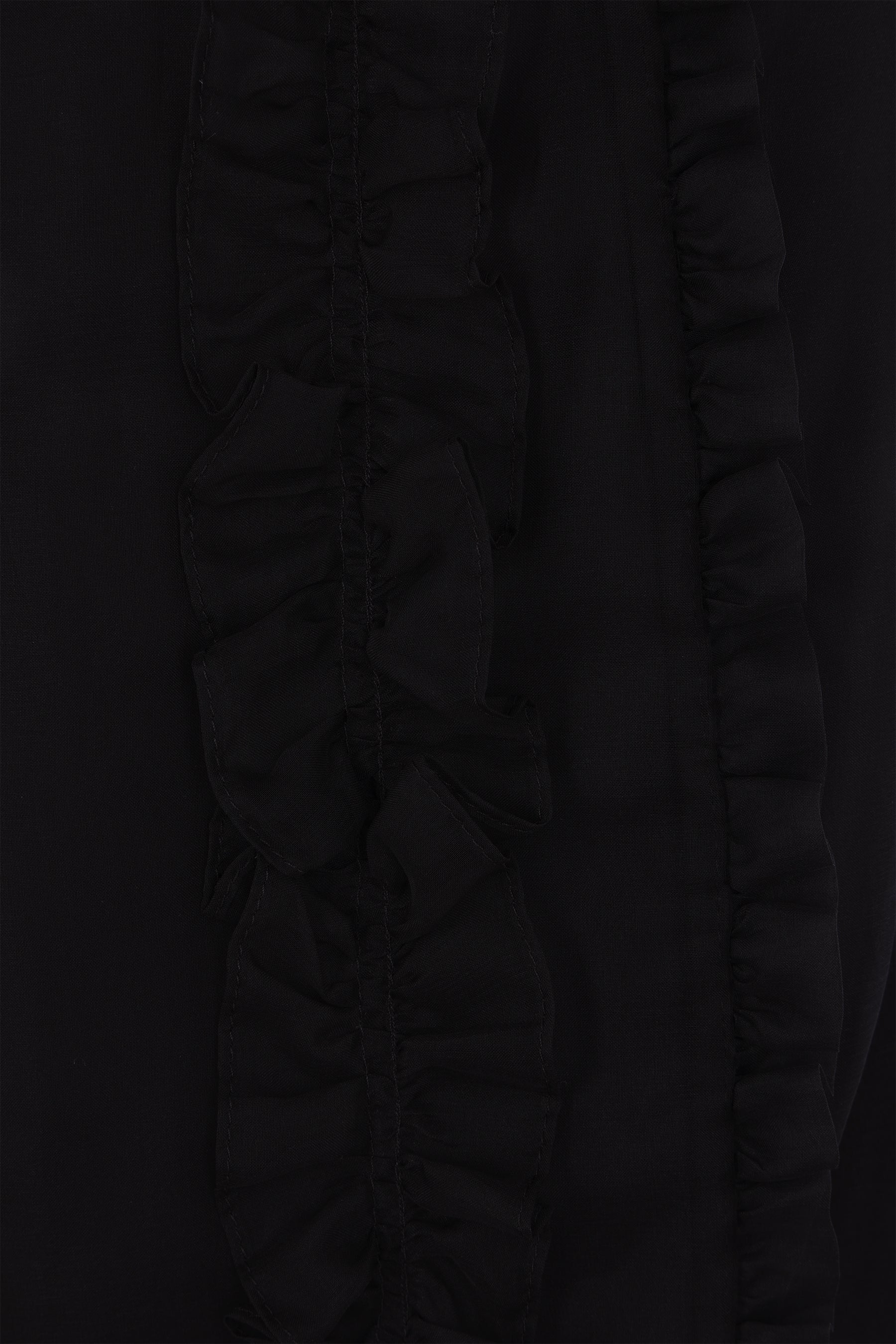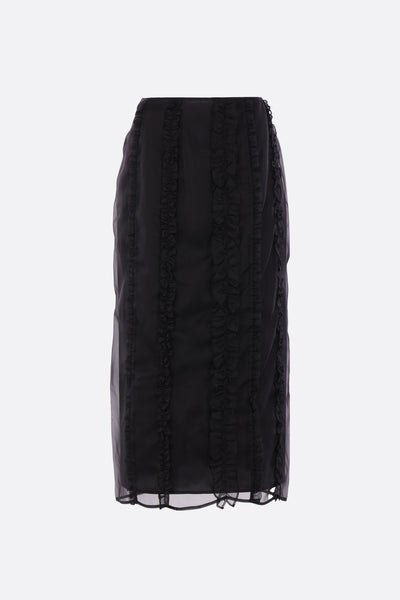 Cecilie Bahnsen midi skirt made of black silk organza with ruching.