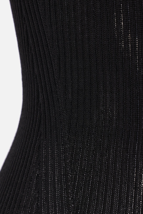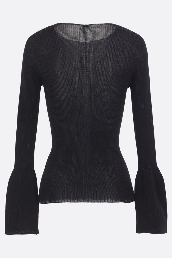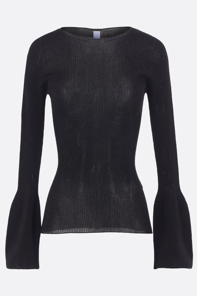 CFCL top crafted from black ribbed knit. Featuring a crew neckline, long bell sleeves, and a straight hem.
