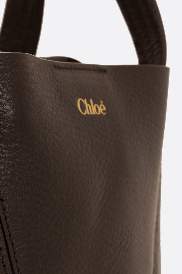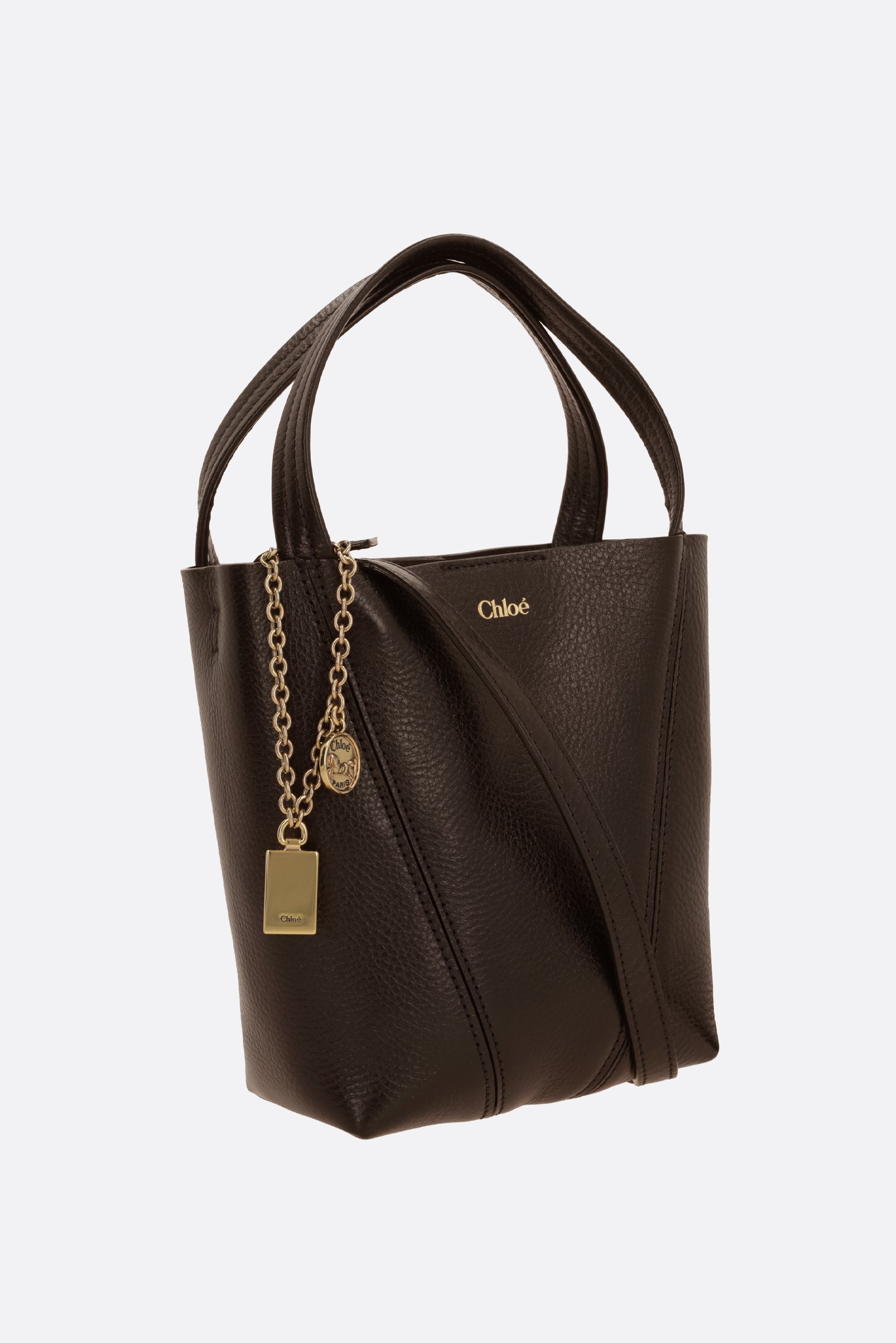 Chloé tote bag crafted from dark brown grained leather. Features gold-tone hardware, double handles, adjustable/removable strap and a decorative chain with "Chloé" and "Horse" pendants. Unlined interior. Wear on the shoulder or slide the handles through the ring for relaxed hand carry.
