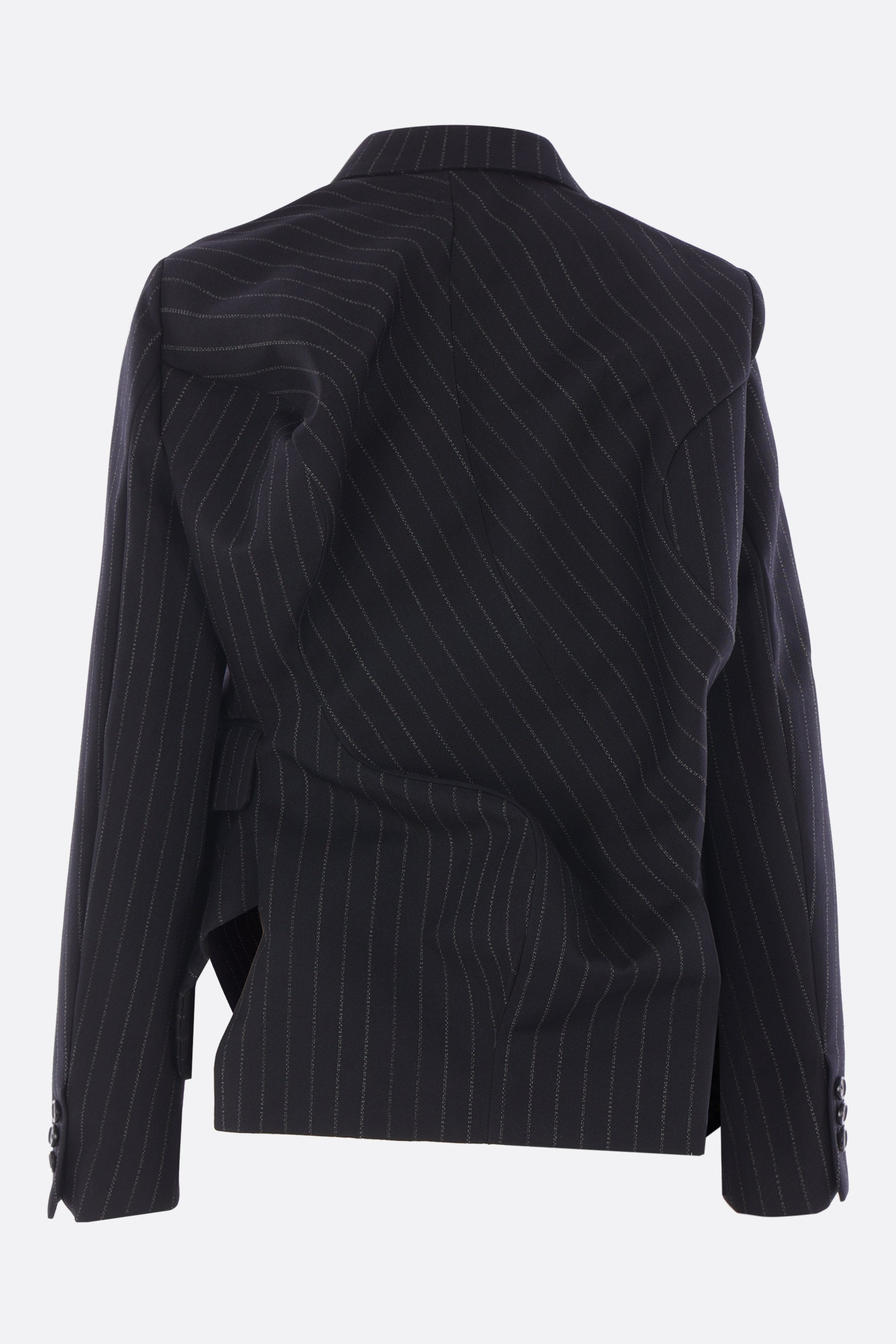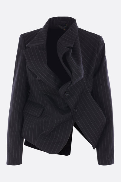 asymmetric jacket in pinstriped wool