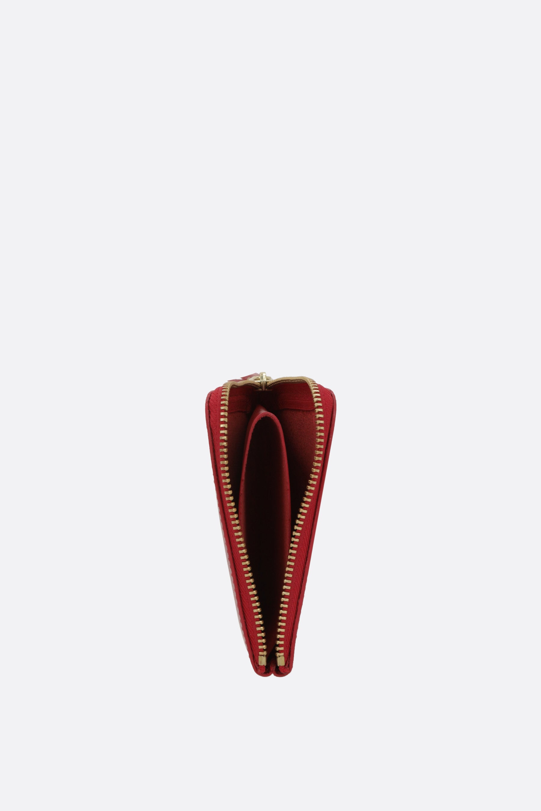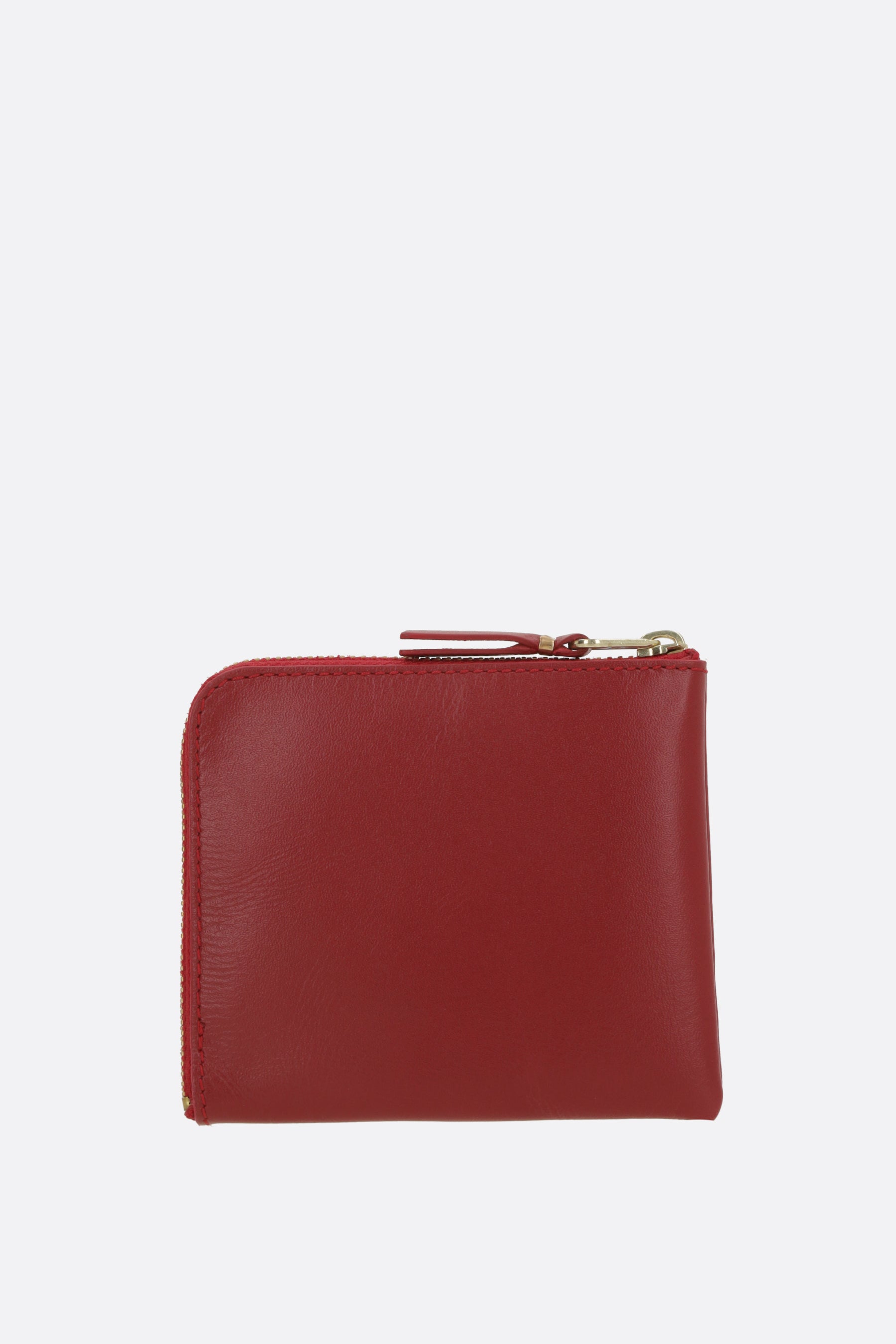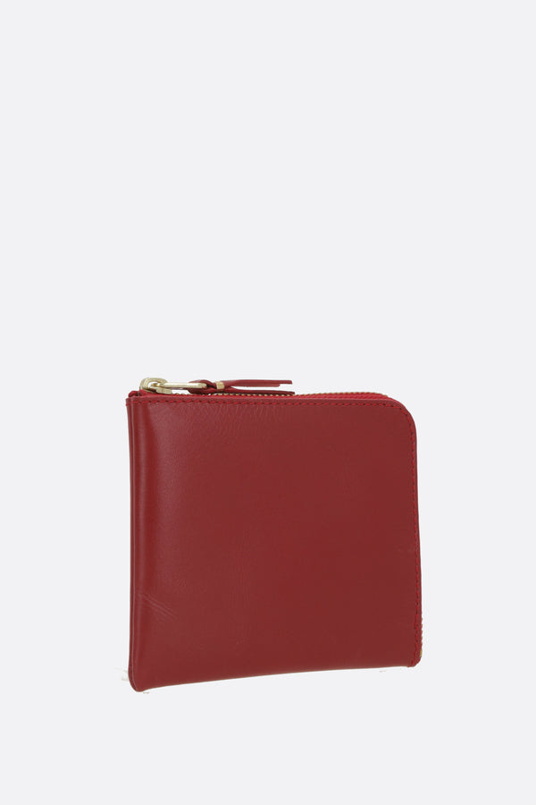 Wallet by Comme des Garçons Wallet made of smooth red leather. Featuring gold-tone hardware and a half-zip closure. The unlined interior includes a central compartment.