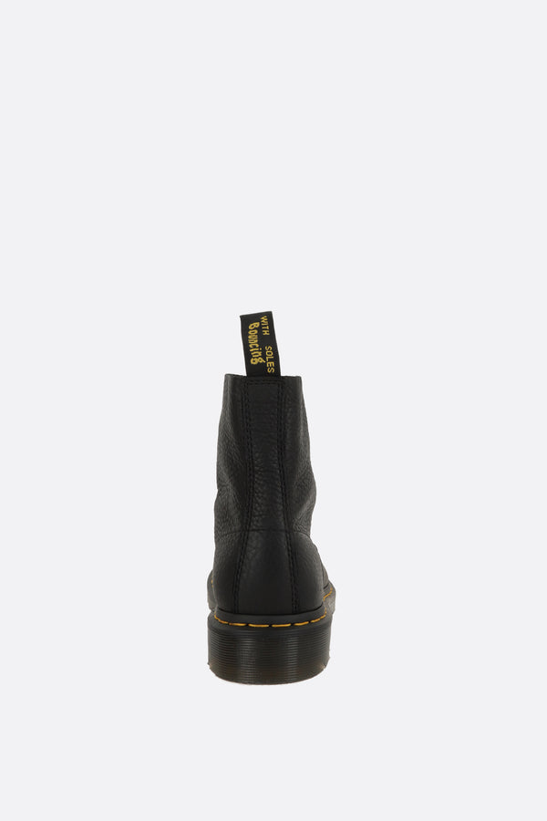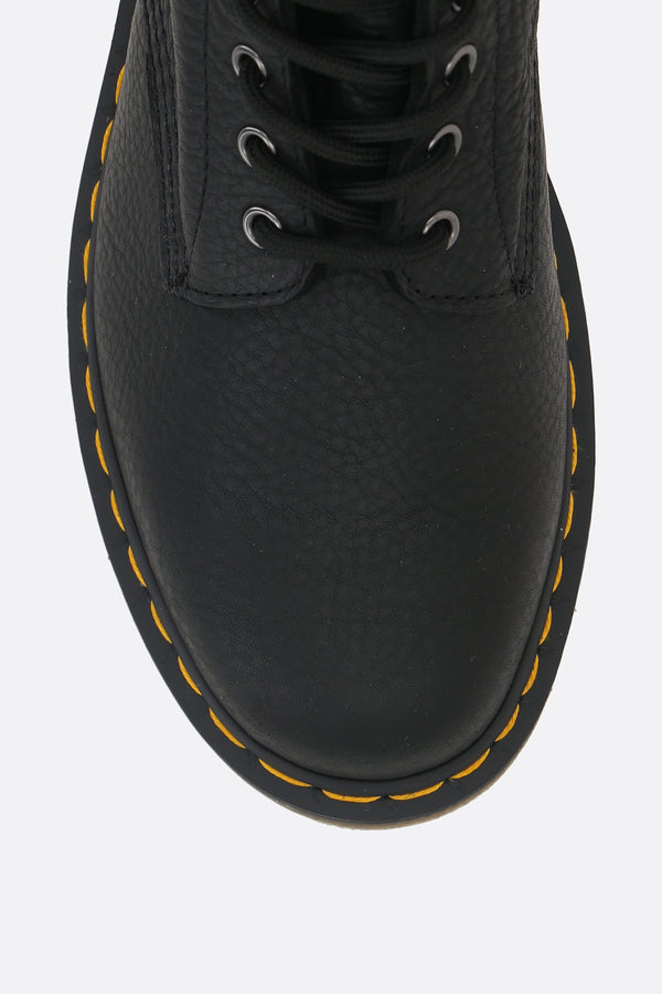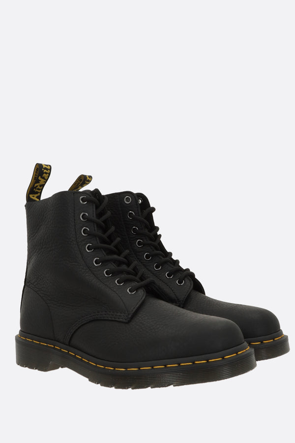 Lace-up boot by Dr. Martens made from black Ambassador leather. Featuring lace-up closure, round toe, leather/textile lining, and rubber sole with signature yellow stitching. The design is completed with the iconic AirWair heel loop.